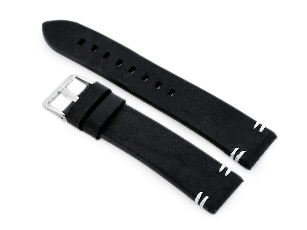 Pasek skórzany do zegarka W25 – czarny/białe – 20mm
