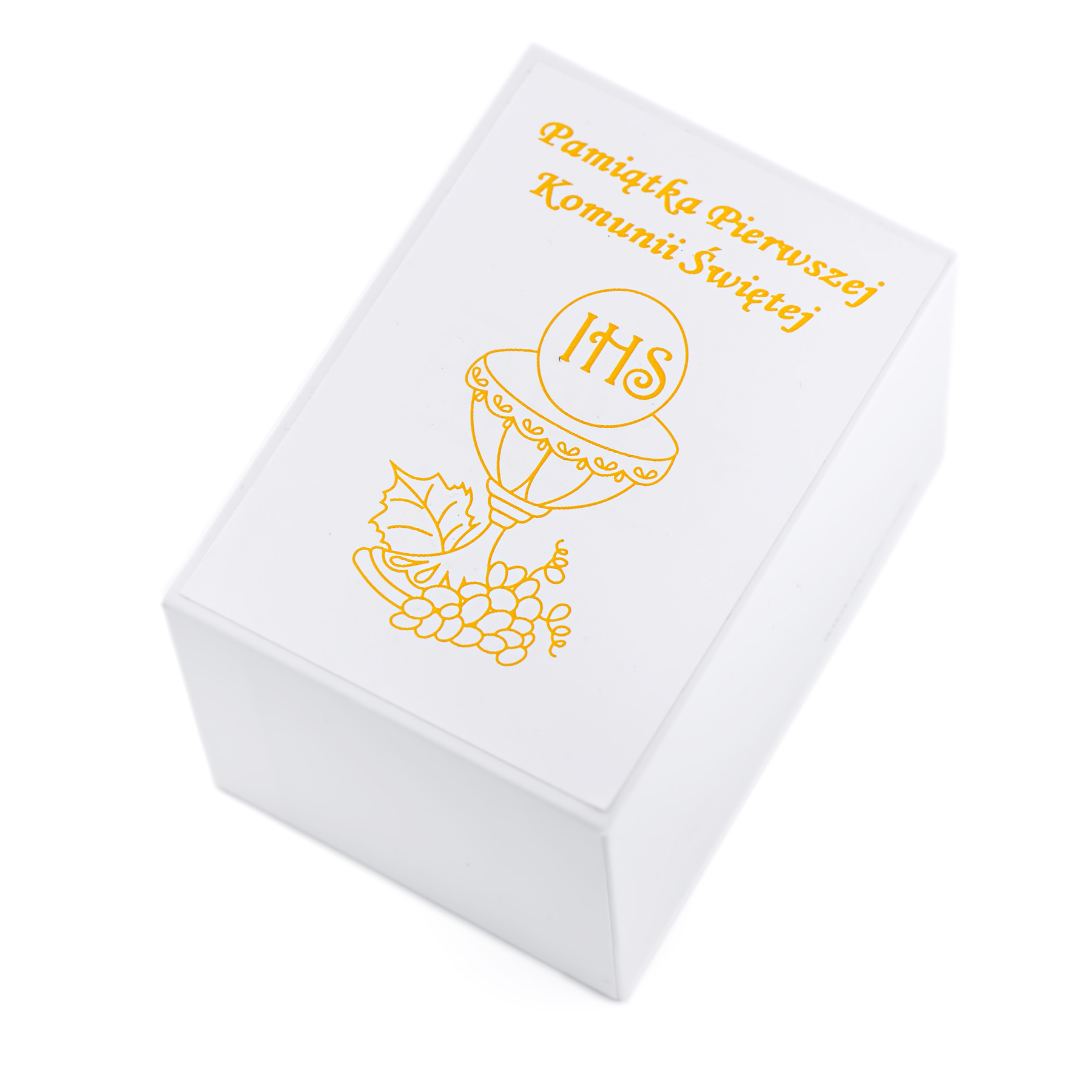 - Pudełko z naklejką – Pamiątka Pierwszej Komunii Świętej.