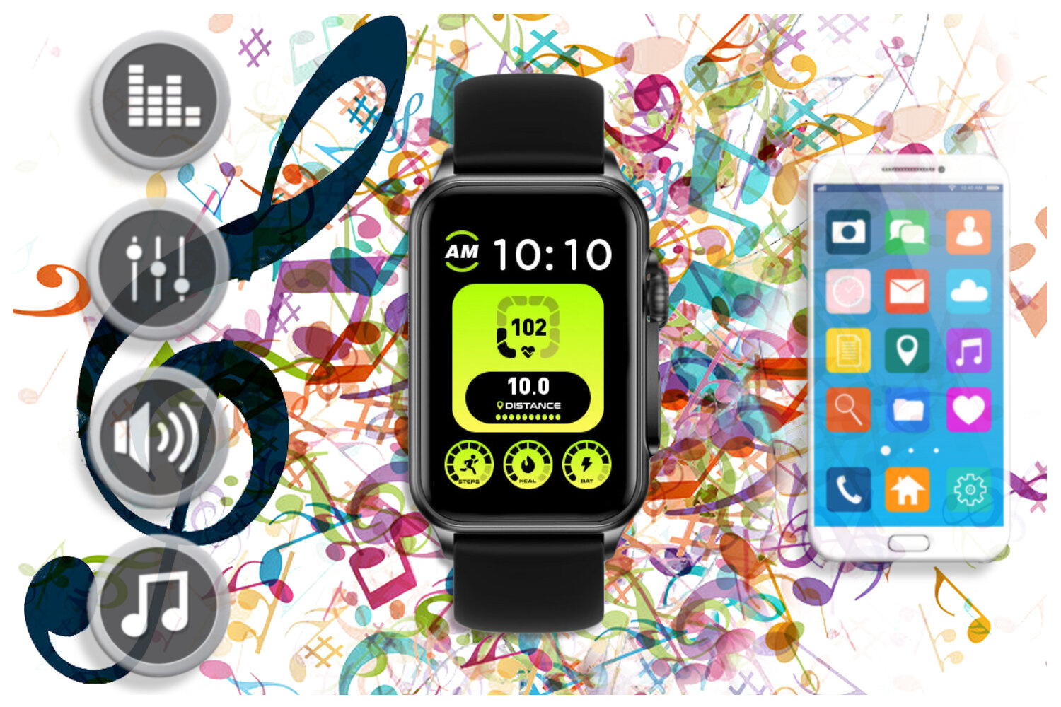 Każdy lubi słuchać swoją ulubioną muzykę. Dzięki bezprzewodowemu połączeniu poprzez bluetooth, od teraz możesz sterować odtwarzaczem muzycznym twojego telefonu komórkowego z poziomu smartwatcha. W ten sposób możesz uprawiać sport w rytm ulubionej muzyki lub relaksować się bez konieczności wyciągania smartfona.