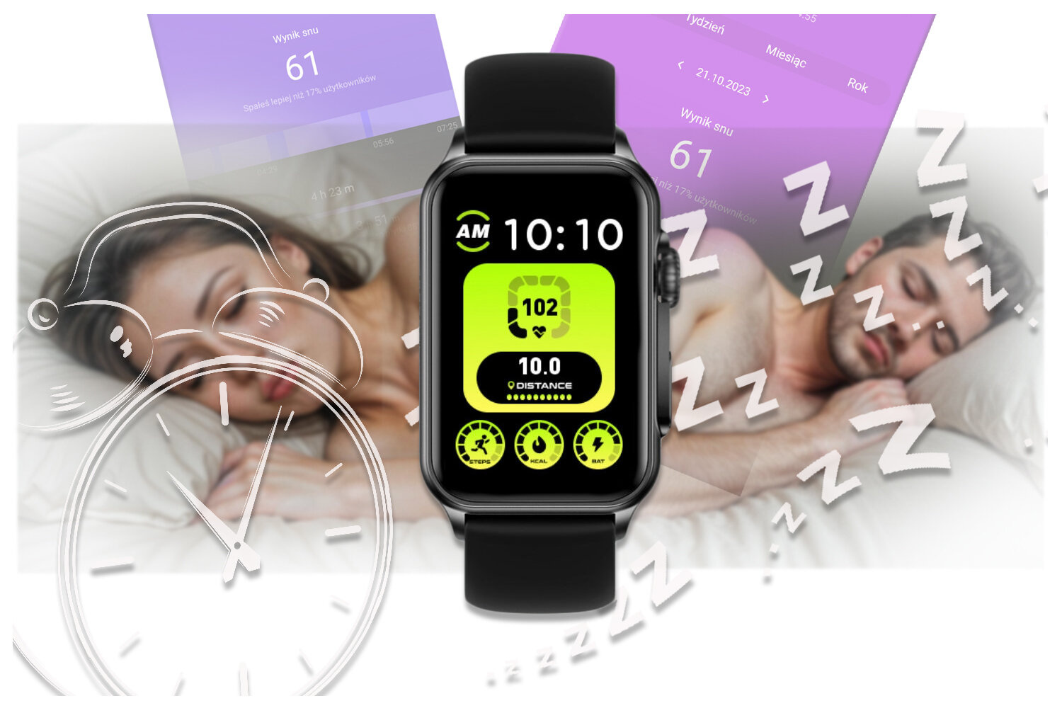 Funkcja ta pozwala monitorować czas i jakoś snu każdej nocy. Po zsynchronizowaniu danych z aplikacją możesz sprawdzać i analizować jakość swojego snu. Historia pokaże jak śpisz i czy twój sen jest dobrej jakości. Po ciężkim dniu każdy musi się wyspać, żeby nabrać sił na kolejny dzień i w tym pomoże Ci ten smartwatch.