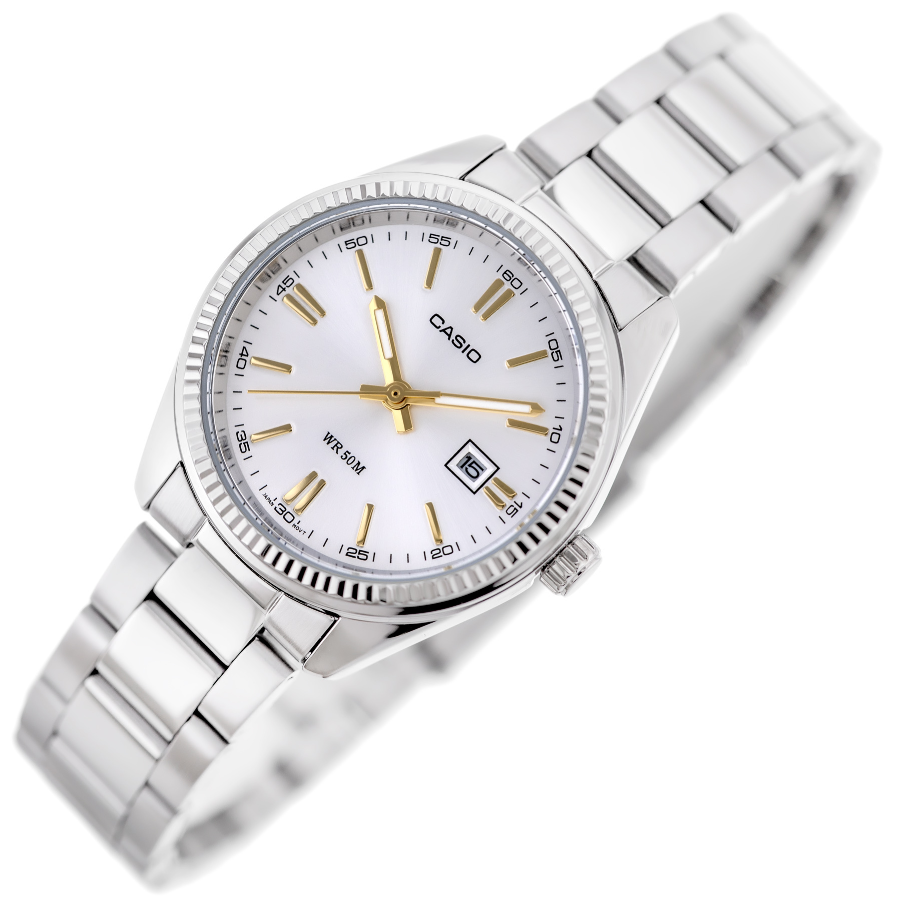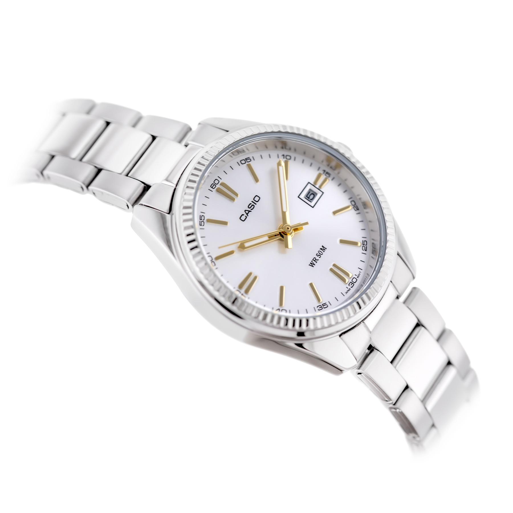 Zegarek damski Casio LTP-1302D 7B to wyjątkowy wyraz subtelności i elegancji dla nowoczesnych kobiet. Jego srebrna bransoleta i koperta doskonale komponują się, tworząc delikatny, a jednocześnie wyrazisty akcent.