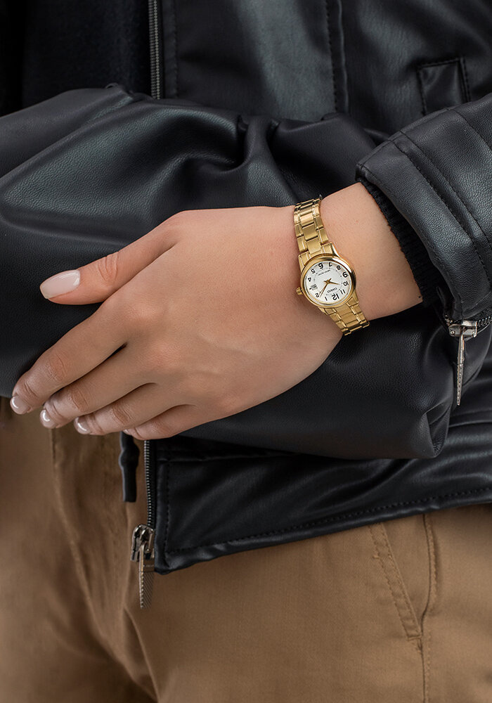 Zegarek Casio LTP-V002G-7B to doskonały wybór dla osób, które cenią sobie klasyczny design i niezawodność. Jego elegancka, złota koperta wykonana ze stali szlachetnej świetnie komponuje się z białą tarczą, tworząc ponadczasowy wygląd. Dzięki precyzyjnemu mechanizmowi kwarcowemu, zegarek zapewnia dokładność i długowieczność, będąc doskonałym narzędziem do codziennego użytkowania.