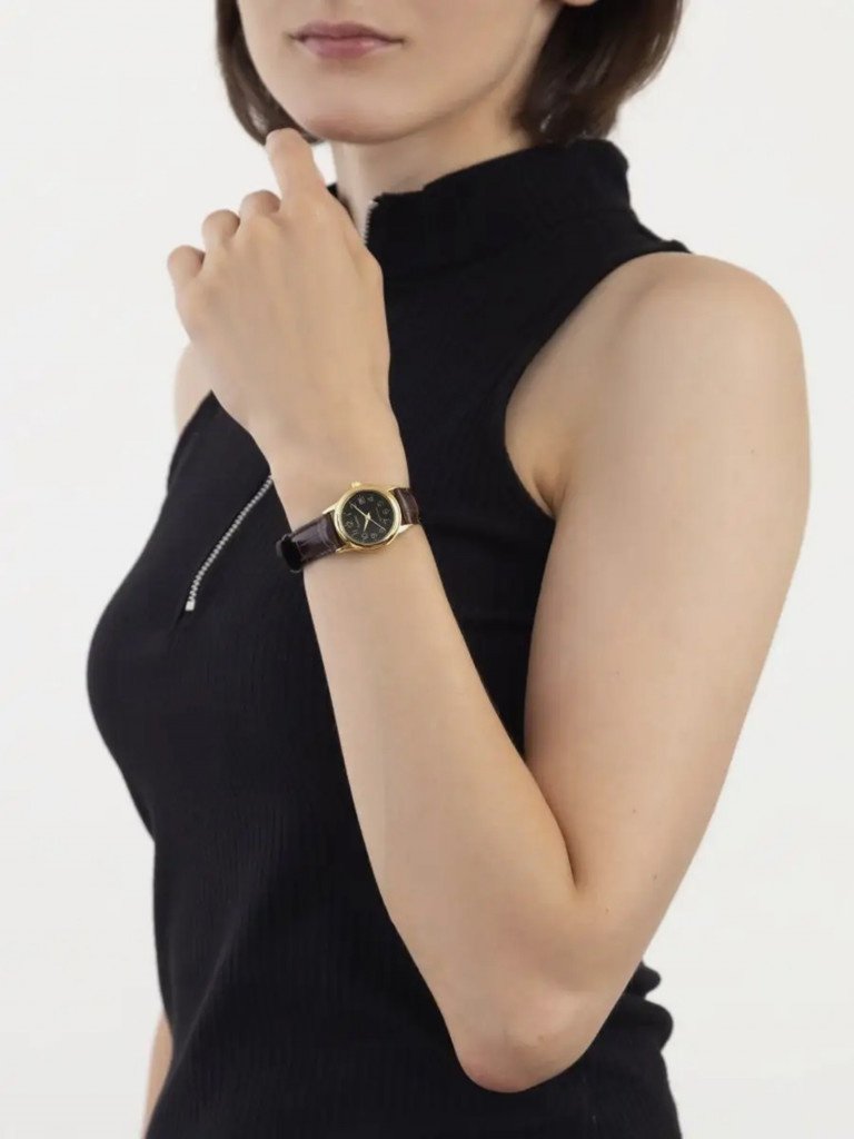 Zegarek damski Casio LTP-V002GL-1BUDF to elegancki wybór dla kobiet, które cenią sobie ponadczasowy styl i niezawodność. Jego koperta została wykonana z wysokiej jakości stali szlachetnej w kolorze złotym, co zapewnia zarówno trwałość, jak i elegancki wygląd. Czarna tarcza zegarka dopełnia klasyczny design, nadając mu subtelnej, ale jednocześnie wyrazistej estetyki.