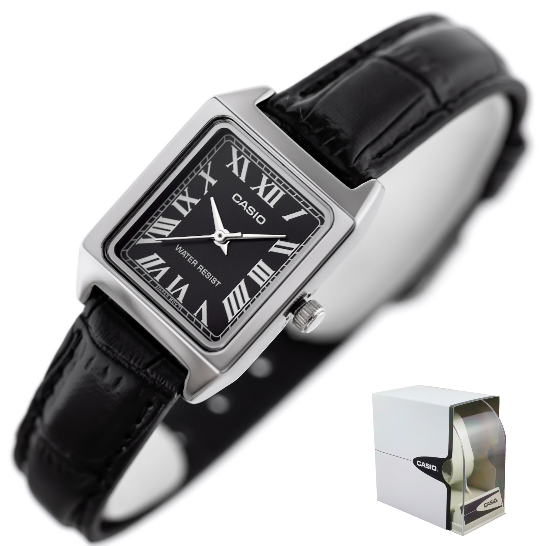 Zegarek CASIO LTP-V007L-1BUDF wyróżnia się elegancją prostokątnej koperty i minimalistycznym designem. Jego niezawodność oparta jest na precyzyjnym japońskim mechanizmie kwarcowym, cenionym w świecie zegarmistrzowskim za doskonałą dokładność.