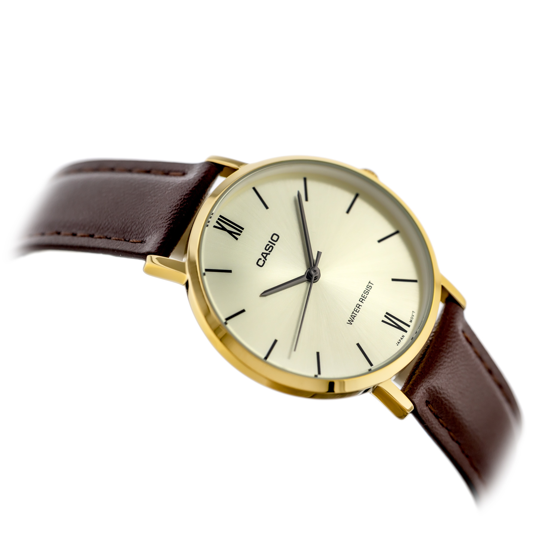 Zegarek CASIO LTP-VT01GL-9B wyróżnia się elegancją okrągłej koperty i minimalistycznym designem. Jego niezawodność oparta jest na precyzyjnym japońskim mechanizmie kwarcowym, cenionym w świecie zegarmistrzowskim za doskonałą dokładność.
