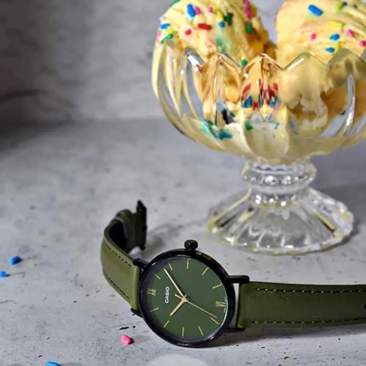 Zielona tarcza z pionowymi indeksami sprawia, że odczyt godziny jest niezwykle prosty. Szkło mineralne, odporne na uderzenia, chroni cyferblat, utrzymując go w nienagannym stanie. Czarna koperta doskonale komponuję się z zielonym paskiem wykonanym ze skóry naturalnej, nadając zegarkowi wyjątkowy charakter. Ten model doskonale sprawdzi się zarówno jako dodatek do codziennego stroju, jak i jako subtelny akcent w bardziej formalnych stylizacjach. Zegarek CASIO LTP-VT02BL-3A to połączenie tradycji, precyzji i stylu, które podkreśli wyjątkowy gust każdej noszącej go kobiety.