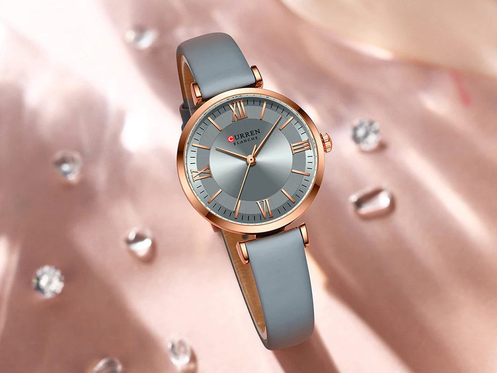 Zegarek męski CURREN 9079 to elegancki damski zegarek idealny zarówno do eleganckiego ubioru, jak i do noszenia na co dzień. Na szarej tarczy z indeksem w kolorze różowego złota znajdziemy klasyczne, czytelne wskazówki.