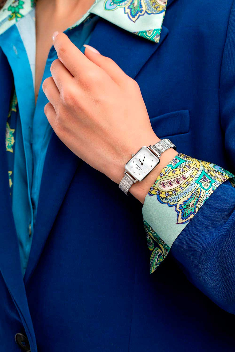 Zegarek damski Daniel Wellington Quadro Lumine Pressed Piano DW00100580 to elegancki model o prostokątnej kopercie, który wyróżnia się subtelną dekoracyjną bransoletą. Zarówno koperta, jak i bransoleta zostały wykonane z wysokiej jakości stali nierdzewnej 316L, pokrytej powłoką PVD w kolorze srebrnym, co zapewnia trwałość i odporność na ścieranie. Perłowa tarcza zegarka ozdobiona jest delikatnymi kryształkami, a całość chroni szkło mineralne. Napędzany precyzyjnym japońskim mechanizmem kwarcowym, zegarek łączy funkcjonalność z elegancją. Zastosowanie masy perłowej, znanej ze swojej zmieniającej się kolorystyki, nadaje temu modelowi wyjątkowy, luksusowy charakter, który podkreśla jego unikalność i prestiż.
