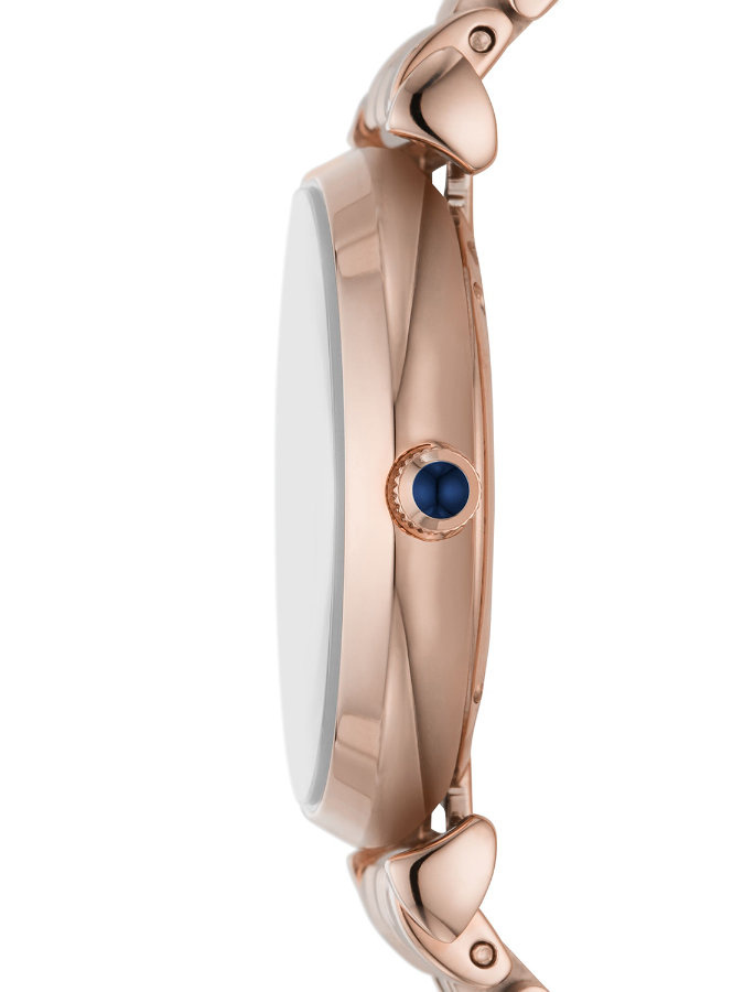 Damski zegarek Emporio Armani AR11423 z serii Gianni T-Bar to elegancki damski zegarek idealny na każdą okazję. Koperta oraz bransoleta zostały wykonane ze stali szlachetnej z powłoką PVD w kolorze różowego złota, co gwarantuje wieloletnią odporność na zniszczenie i odbarwienia. Model posiada dokładny mechanizm kwarcowy zasilany baterią. Granatową tarczę zdobioną srebrnymi cyrkoniami zabezpiecza odporne na zarysowania szkło mineralne.