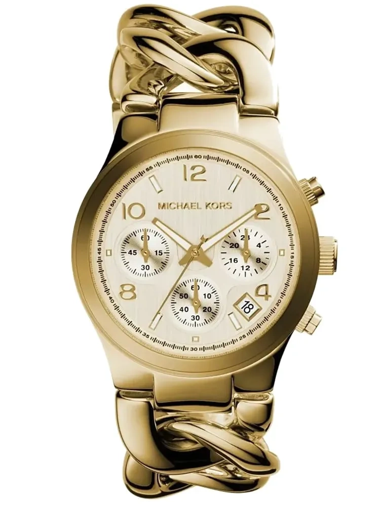 Model Michael Kors MK3131 to zegarek na złotej bransolecie. Oznaczenia godzinowe w postaci cyfr arabskich oraz indeksów świetnie komponują się ze złota tarczą i wskazówkami. Wyposażony jest w precyzyjny mechanizm kwarcowy, dzięki któremu zegarek dokładanie pokazuje aktualną godzinę.