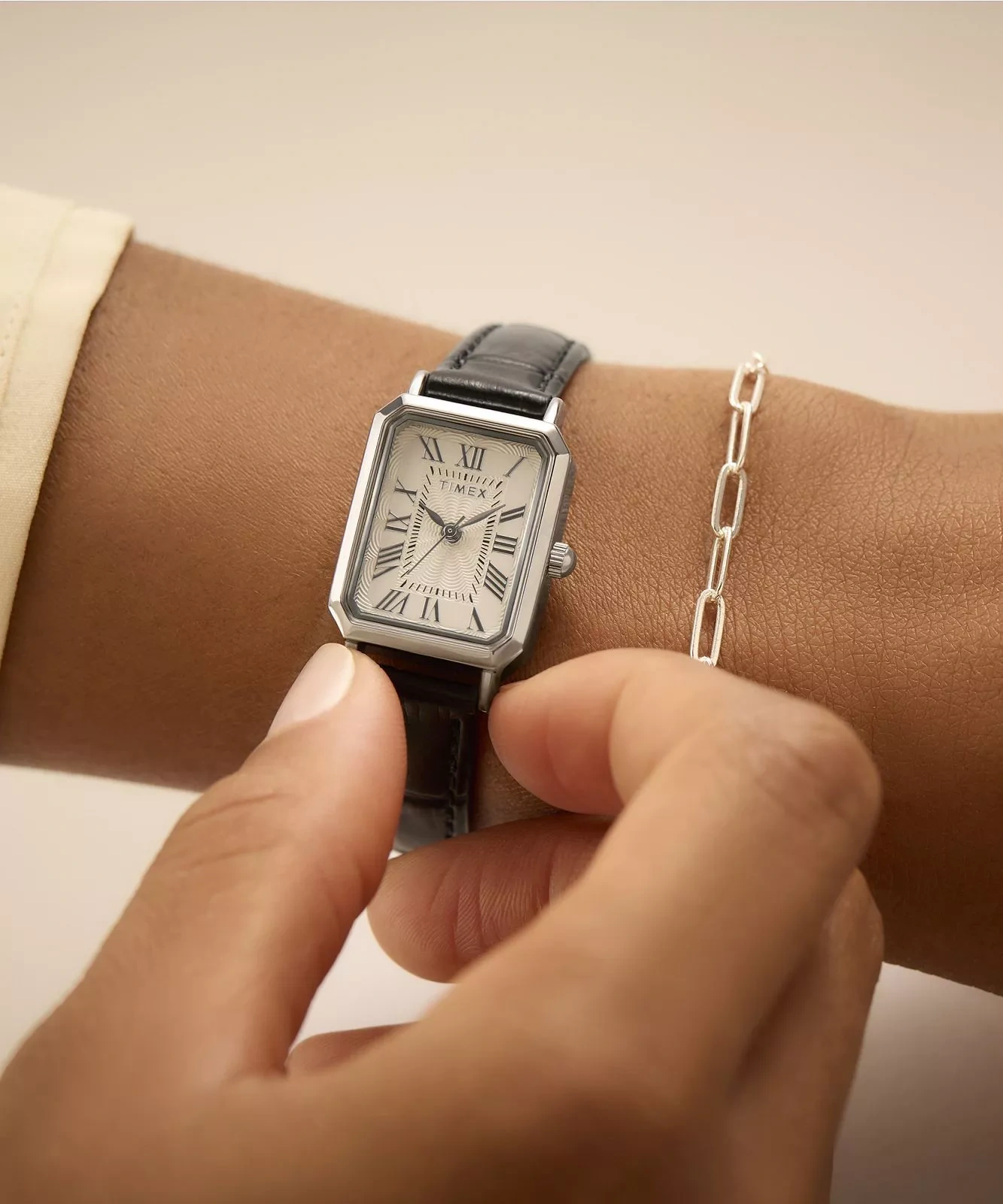 Elegancki damski zegarek TIMEX TW2Y00800 Dress pasuje idealnie do codziennych stylizacji, jak i na bardziej uroczyste okazje. Tarcza w kolorze białym z czytelnymi srebrnymi cyframi – całość chroni mineralne szkło odporne na zarysowania. Model ten posiada czarny skórzany pasek oraz srebrną kopertę wykonaną z wysokiej jakości stali szlachetnej. Klasa wodoszczelności zegarka to WR30.