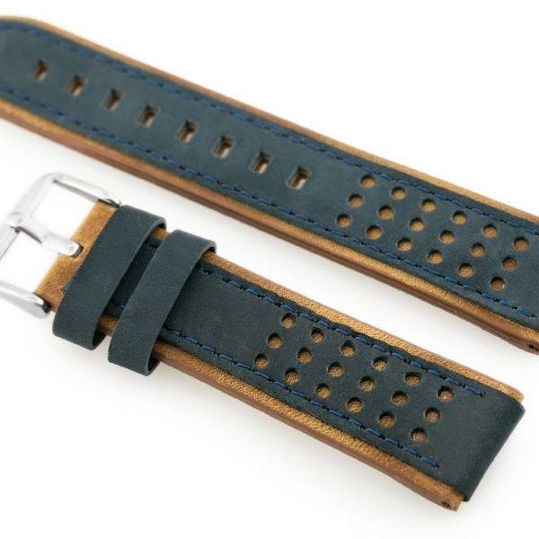 Pasek skórzany do zegarka W80 granatowy/brąz 24mm
