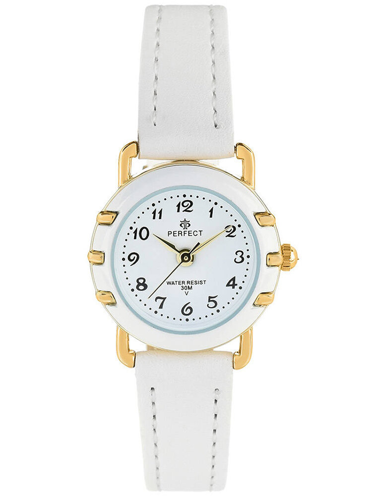 Zegarek dziecięcy PERFECT LP033-02 – KOMUNIJNY to wyjątkowy i delikatny dodatek, stworzony z myślą o tym szczególnym dniu. Posiada biały skórzany pasek, który doskonale komponuje się z biało-złotą kopertą i białą tarczą, tworząc elegancką, a zarazem subtelną całość. Złoty indeks nadaje zegarkowi klasy i sprawia, że czas jest łatwy do odczytania, nawet dla najmłodszych.