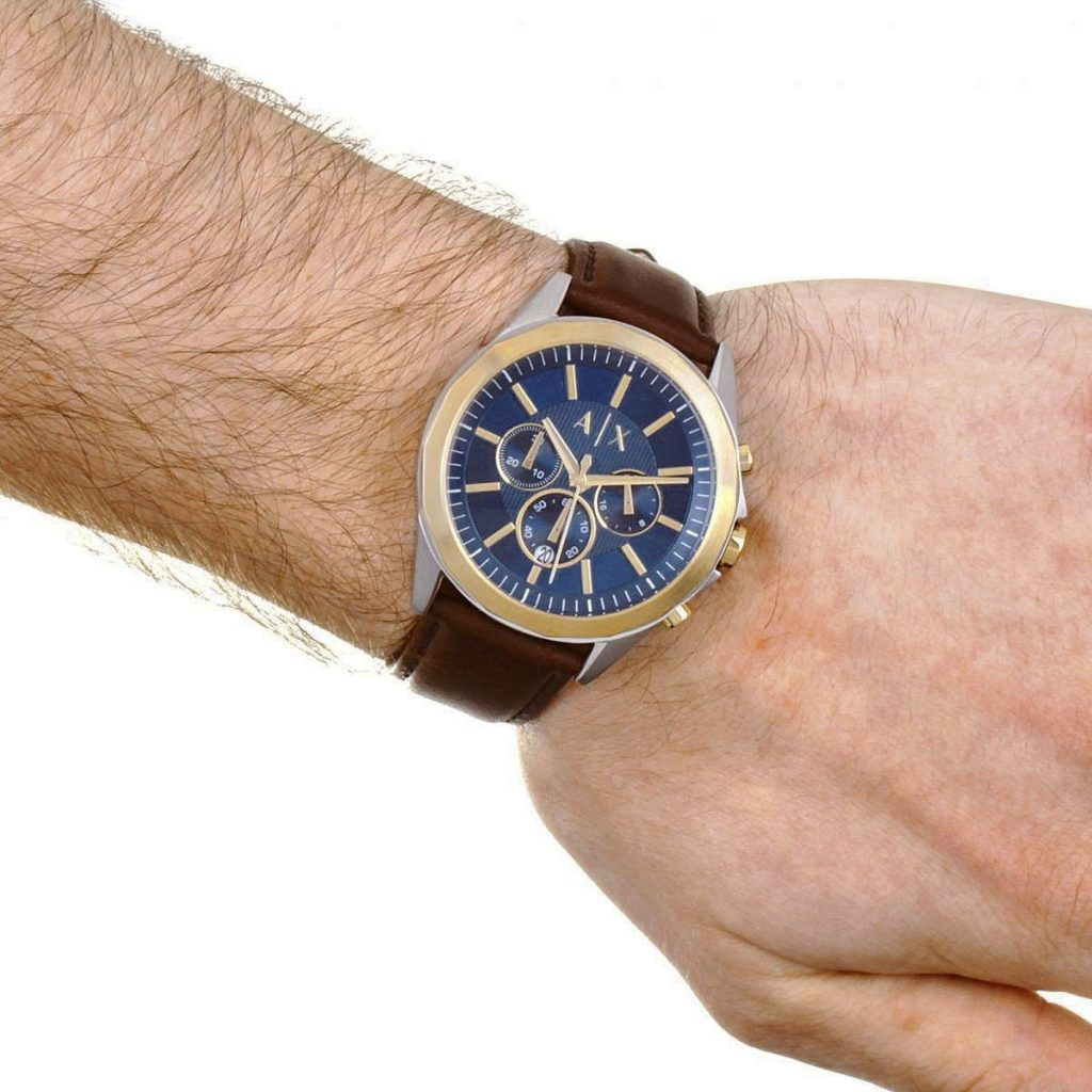 Zegarek Armani Exchange AX2612 jest wodoodporny do 100 metrów, co czyni go odpornym na zachlapania oraz umożliwia pływanie i nurkowanie na niewielką głębokość. Szeroki pasek ze skóry naturalnej w brązowym kolorze dobrze komponuje się z całością, podkreślając nowoczesny charakter zegarka.