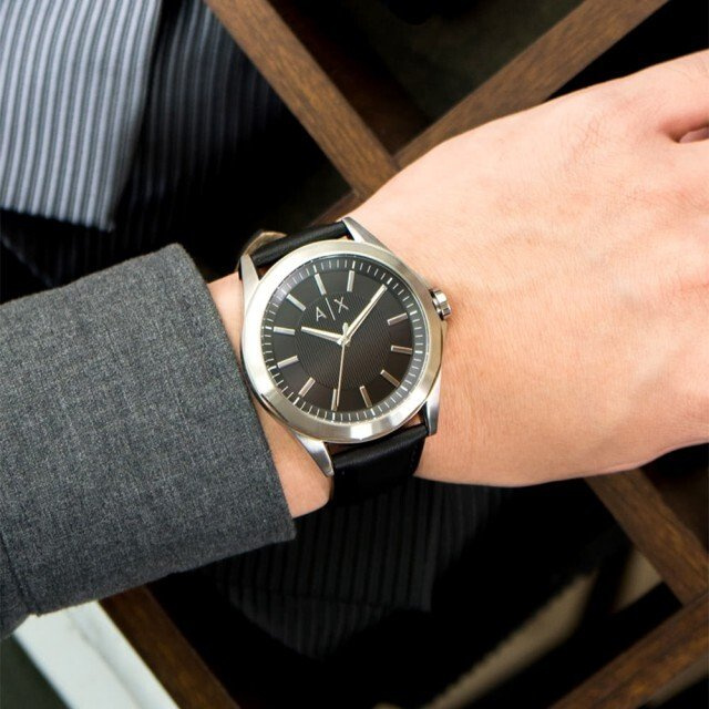 Zegarek Armani Exchange AX2621 jest wodoodporny do 100 metrów, co czyni go odpornym na zachlapania oraz umożliwia pływanie i nurkowanie na niewielką głębokość. Szeroki pasek ze skóry naturalnej w czarnym kolorze dobrze komponuje się z całością, podkreślając nowoczesny charakter zegarka.