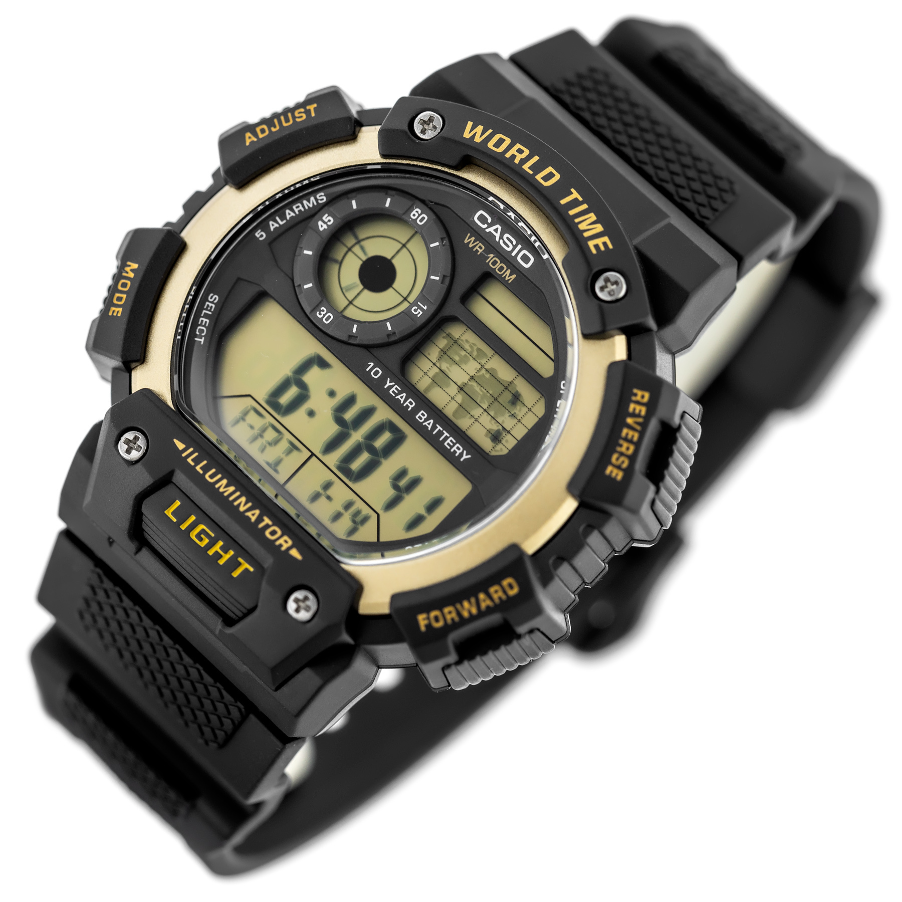Zegarek męski CASIO AE-1400WH-9AVEF to niezawodny czasomierz, który doskonale łączy sportowy charakter z funkcjonalnością. Jego nowoczesny design sprawia, że jest idealnym wyborem zarówno do aktywności fizycznych, jak i do codziennego użytku. Dzięki precyzyjnemu mechanizmowi kwarcowemu oraz dużemu wachlarzowi funkcji, ten zegarek z pewnością sprosta wymaganiom każdego użytkownika. Koperta zegarka wykonana z tworzywa sztucznego w czarnym kolorze jest lekka, a zarazem bardzo wytrzymała, zapewniając odpowiednią ochronę dla mechanizmu. Ciemna tarcza z cyfrowym wyświetlaczem jest doskonale widoczna, a szkiełko akrylowe chroni ją przed zarysowaniami i obtłuczeniami. Zegarek jest wyposażony w szereg funkcji, które sprawiają, że jest on niezwykle funkcjonalny. Posiada między innymi wieczny kalendarz, stoper, alarm (z możliwością ustawienia 5 budzików), funkcję drzemki, a także czas światowy, dzięki któremu zawsze będziesz na bieżąco z godziną w różnych strefach czasowych. CASIO AE-1400WH-9AVEF jest również odporny na wodę do 100 metrów, co pozwala na pływanie oraz nurkowanie bez akwalungu, a także na codzienne użytkowanie w warunkach wilgotnych, bez obawy o uszkodzenie mechanizmu. Dodatkowo, zegarek został wyposażony w podświetlenie tarczy LED, co ułatwia odczytanie godziny w ciemności.