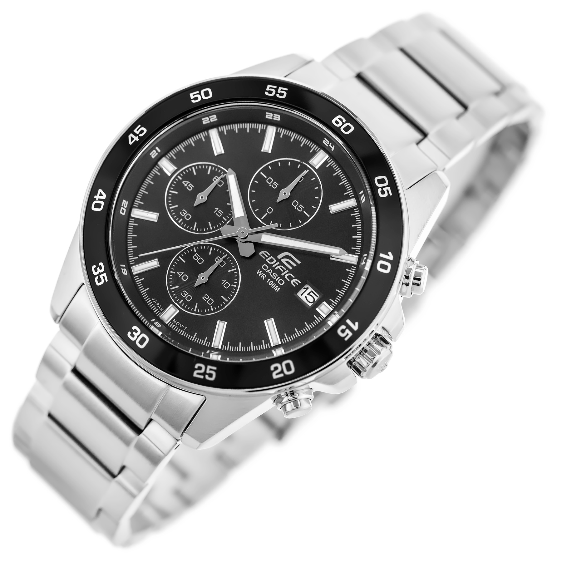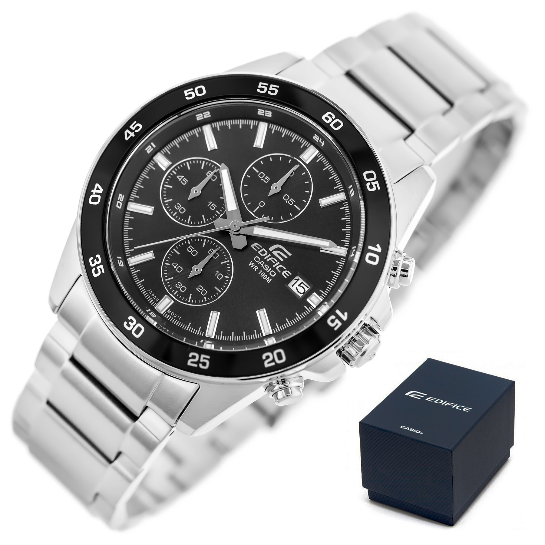 Zegarek Casio Edifice EFR-526D-1AV to dynamiczny czasomierz o sportowym charakterze, wyposażony w precyzyjny chronograf. Dzięki wodoszczelności do 100m, zegarek gwarantuje niezawodną ochronę przed wilgocią. Wskazówki czasomierza są dodatkowo podkreślone fosforyzującą farbą Neobrite, co ułatwia odczyt godziny nawet w zacienionych miejscach. Zegarek ten posiada także datownik umieszczony na godzinie 3, dodając funkcjonalności i stylu do codziennego użytku. Całość wykonana jest ze stali nierdzewnej w kolorze srebrnym.