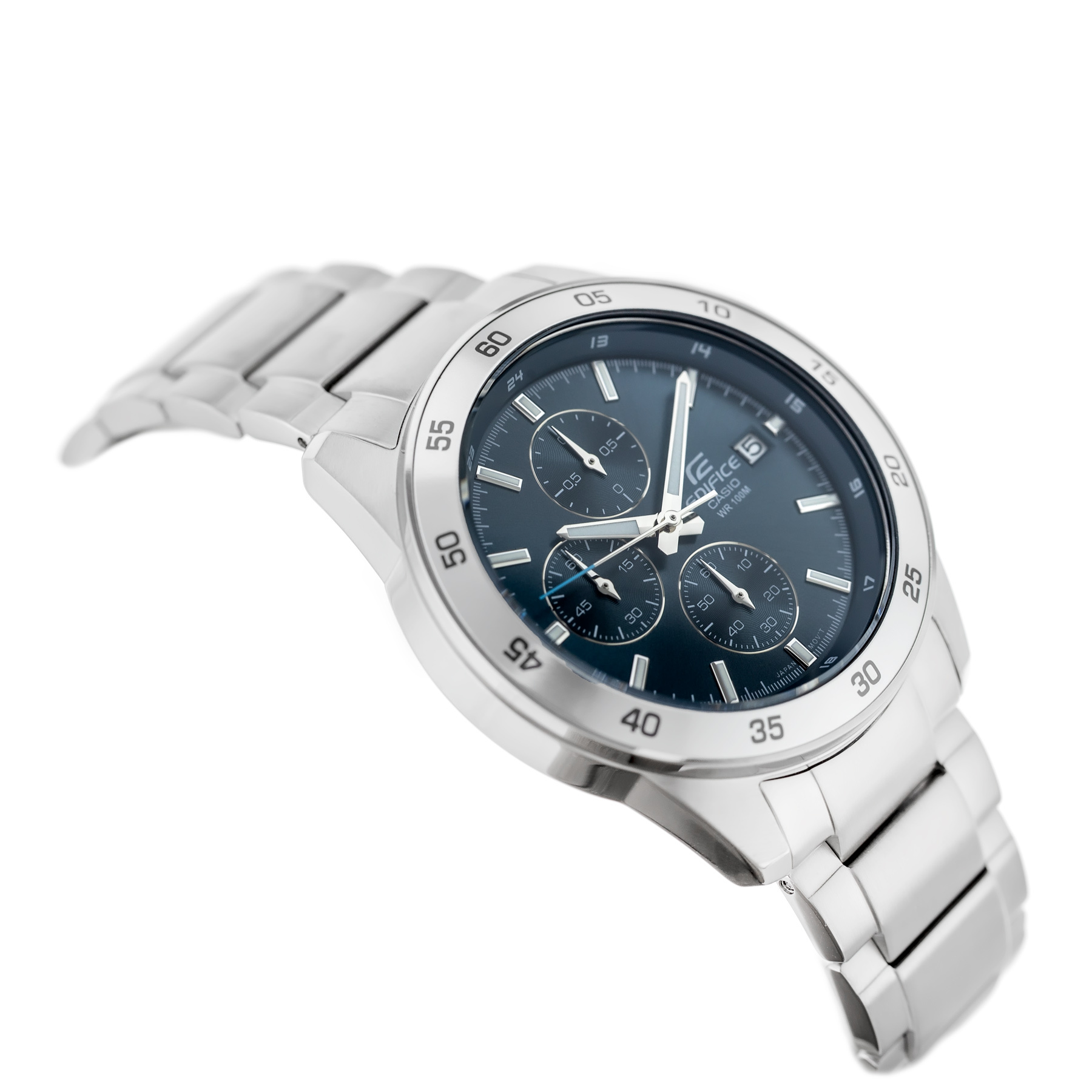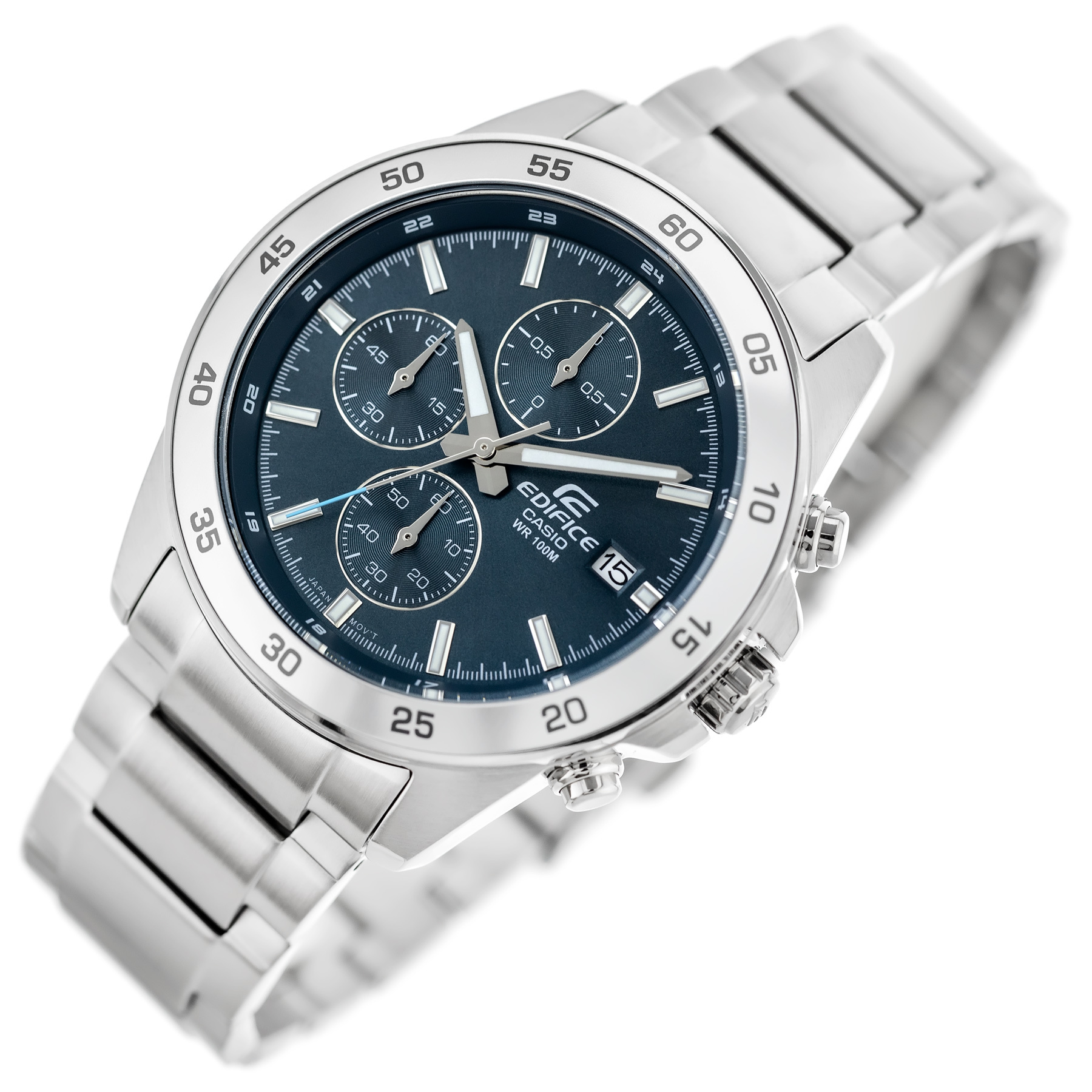 Zegarek Casio Edifice EFR-526D-2AV to dynamiczny czasomierz o sportowym charakterze, wyposażony w precyzyjny chronograf. Dzięki wodoszczelności do 100m, zegarek gwarantuje niezawodną ochronę przed wilgocią. Wskazówki czasomierza są dodatkowo podkreślone fosforyzującą farbą Neobrite, co ułatwia odczyt godziny nawet w zacienionych miejscach. Zegarek ten posiada także datownik umieszczony na godzinie 3, dodając funkcjonalności i stylu do codziennego użytku. Całość wykonana jest ze stali nierdzewnej w kolorze srebrnym.
