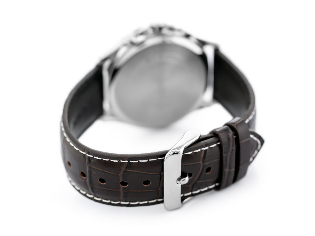 Pasek wykonana z wysokiej jakości skóry w eleganckim brązowym odcieniu doskonale komponuje się z resztą zegarka, oferując wygodę noszenia przez cały dzień. Jej miękkość i subtelne wykończenie sprawiają, że jest to model, który można komfortowo nosić przez długie godziny, nie rezygnując przy tym z eleganckiego wyglądu.