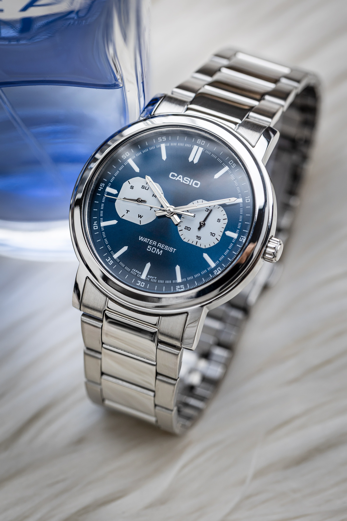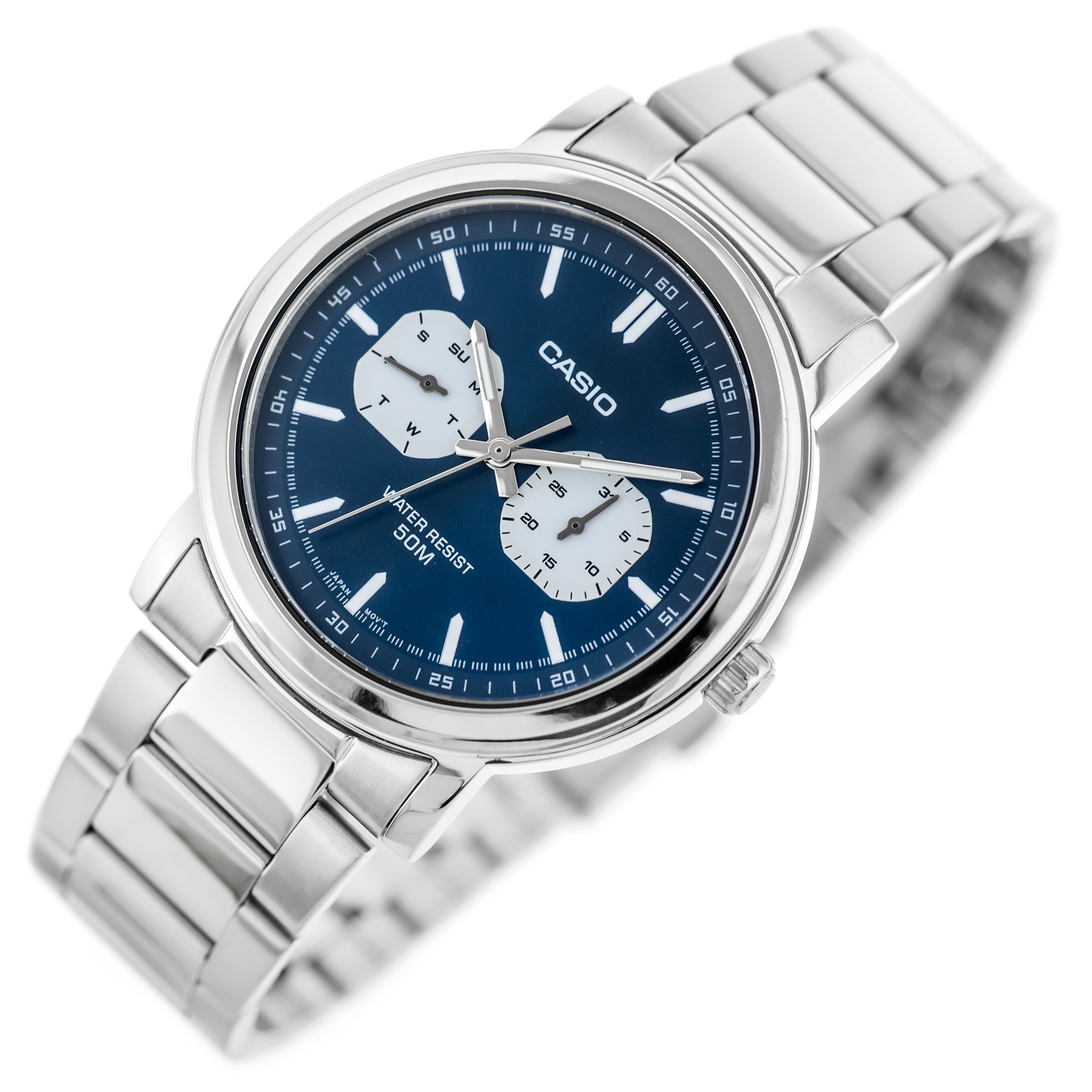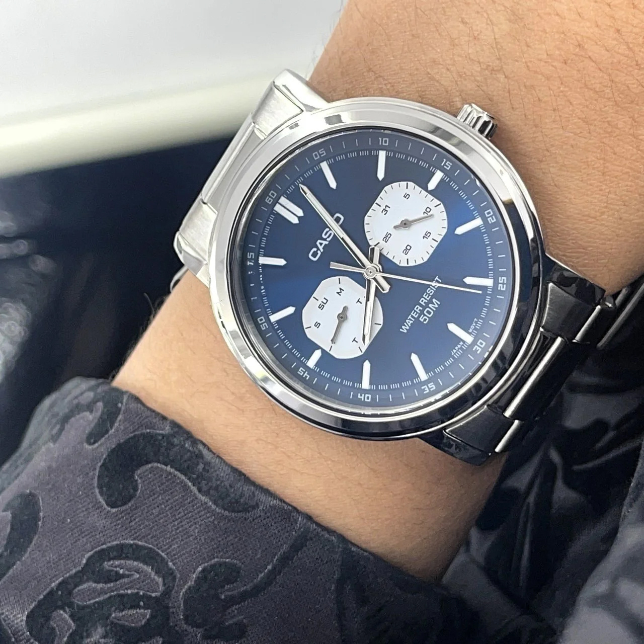 CASIO MTP-E335D-2E1 to zegarek, który doskonale łączy w sobie wytrzymałość i elegancję. Jego wodoszczelność do 50M sprawia, że jest odporny na zachlapania i krótkotrwałe zanurzenia w wodzie, co czyni go idealnym towarzyszem na co dzień – niezależnie od tego, czy jesteś w pracy, na spotkaniu z przyjaciółmi, czy podczas weekendowego relaksu. Wytrzymała bransoleta ze stali szlachetnej w srebrnym kolorze idealnie komponuje się z kopertą, tworząc spójną, harmonijną całość, która przyciąga wzrok swoją prostotą i klasą. Bransoleta ta nie tylko dodaje zegarkowi wyrafinowanego charakteru, ale także zapewnia komfort noszenia przez cały dzień, dzięki dopracowanemu systemowi zapięcia.