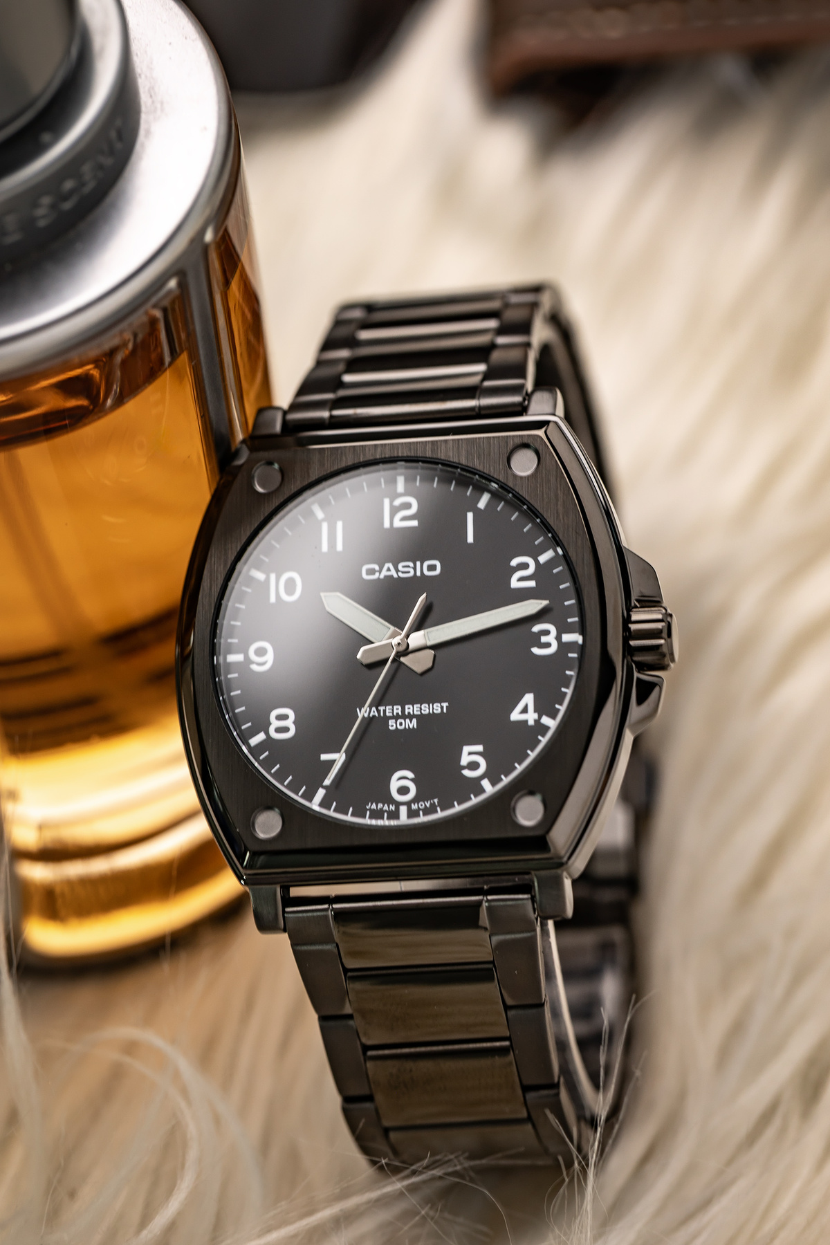 Zegarek męski Casio MTP-E730B-1A to elegancki i ponadczasowy czasomierz, który łączy w sobie klasyczny design z niezawodną funkcjonalnością. Jego subtelna, ale wyrazista estetyka sprawia, że jest to idealny wybór zarówno na co dzień, jak i na specjalne okazje. Z tarczą w kolorze czarnym, ozdobioną delikatnymi, białymi indeksami i grafitowymi wskazówkami, zegarek emanuje prostotą, ale i elegancją. Minimalistyczny wygląd sprawia, że Casio MTP-E730B-1A pasuje zarówno do garnituru, jak i do bardziej casualowych stylizacji, stając się doskonałym dopełnieniem codziennych outfitów.