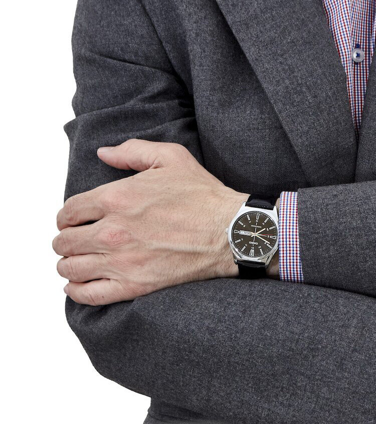 Zegarek męski Casio MTP-V006L-1C to elegancki i ponadczasowy czasomierz, który łączy w sobie klasyczny design z niezawodną funkcjonalnością. Jego subtelna, ale wyrazista estetyka sprawia, że jest to idealny wybór zarówno na co dzień, jak i na specjalne okazje. Z tarczą w kolorze czarnym, ozdobioną delikatnymi, srebrnymi indeksami i srebrnymi wskazówkami, zegarek emanuje prostotą, ale i elegancją. Minimalistyczny wygląd sprawia, że Casio MTP-V006D-7CUDF pasuje zarówno do garnituru, jak i do bardziej casualowych stylizacji, stając się doskonałym dopełnieniem codziennych outfitów.