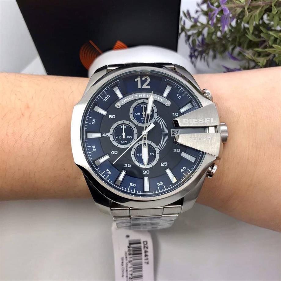 Zegarek męski Diesel Mega Chief DZ4417 napędza japoński mechanizm kwarcowy, zasilany baterią o średniej żywotności 2 lat. Niebieski cyferblat czasomierza, zabezpiecza bardzo odporne na zarysowania szkiełko mineralnym. Kopertę i bransoletę wykonano ze stali szlachetnej, co gwarantuje wieloletnią trwałość.