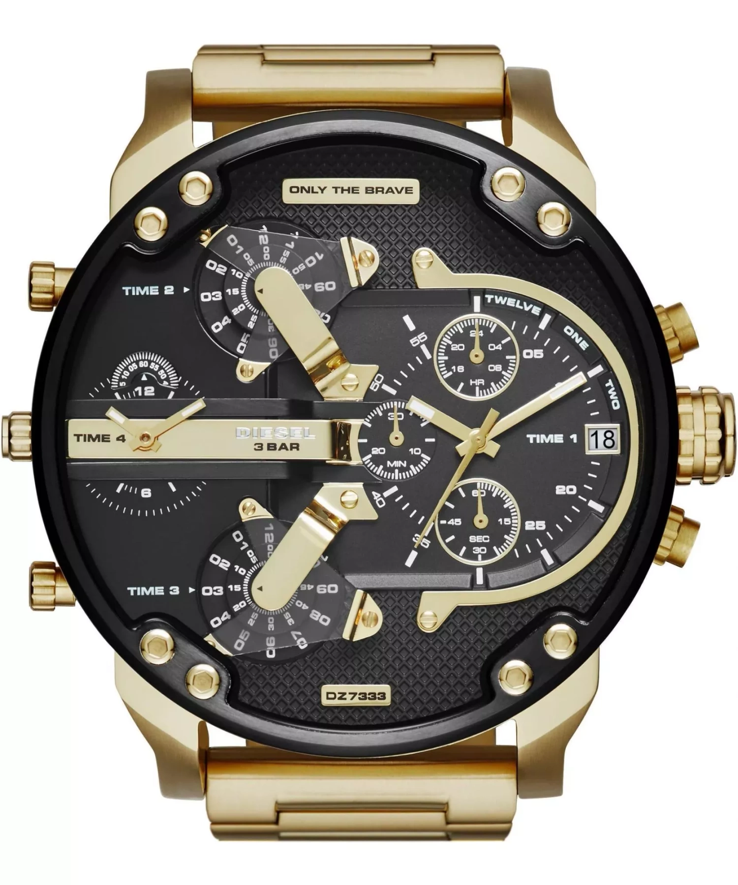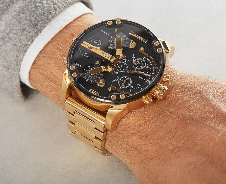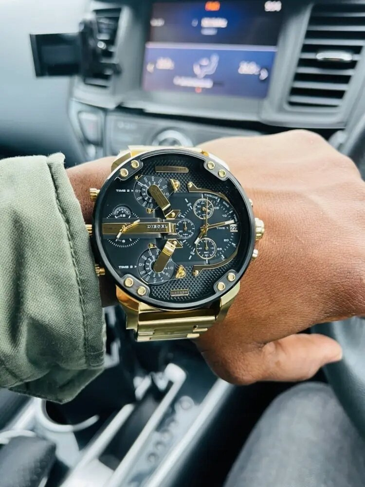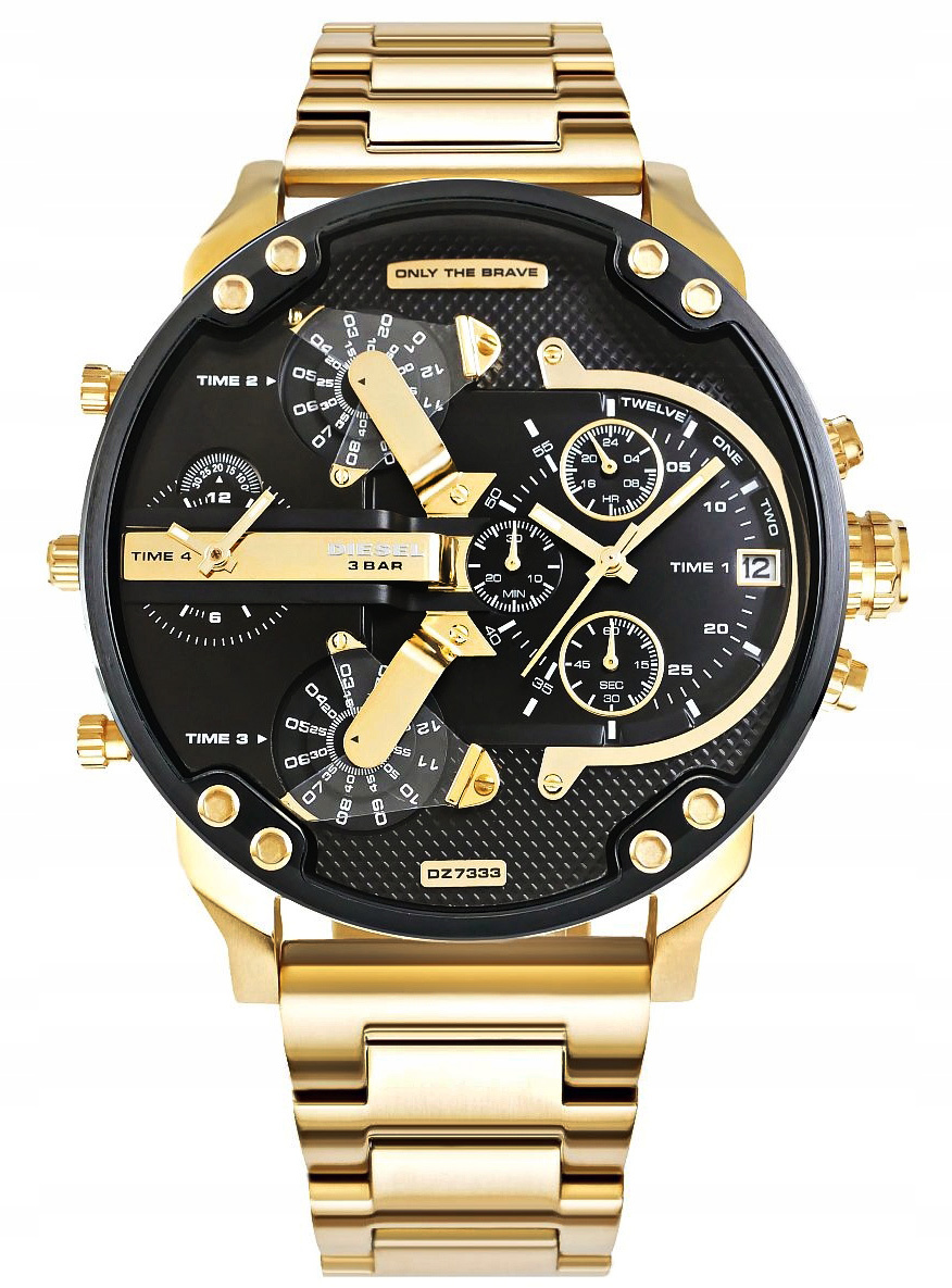 DIESEL DZ7333 to masywny i nowoczesny zegarek, który wyróżnia się unikalnym wzornictwem i wysoką funkcjonalnością. Zaprojektowany dla mężczyzn ceniących odważne dodatki, stanowi połączenie industrialnego stylu i praktycznych rozwiązań. Jego wyrazisty wygląd podkreśla indywidualność i pewność siebie. DZ7333 posiada czarną tarczę z kontrastującymi złotymi akcentami i wielopoziomowym układem. Wyposażona w cztery niezależne strefy czasowe oraz sub-tarcze chronografu.DIESEL DZ7333 to propozycja dla mężczyzn, którzy szukają zegarka wyróżniającego się niebanalnym stylem i solidnym wykonaniem. Doskonały wybór dla osób lubiących dominujące, a jednocześnie funkcjonalne dodatki.