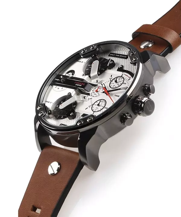 Zegarek męski Diesel Mr. Daddy 2.0 DZ7394 to duży męski zegarek. Brązowy skórzany pasek doskonale komponuje się ze srebrną kopertą, którą wykonano z hipoalergicznej stali szlachetnej. Na tarczy zamontowano 4 oddzielne mechanizmy mierzenia czasu. Całość pokryta szkłem mineralnym gwarantuje wytrzymałość na zarysowania i pęknięcia. Wodoodporność na 30 metrów chroni przed zachlapaniem. Zastosowany mechanizm kwarcowy jest niezawodny. Model Diesel Mr. Daddy 2.0 DZ7394 to połączenie niewymuszonej elegancji ze sportowym charakterem – musi przyciągać uwagę!