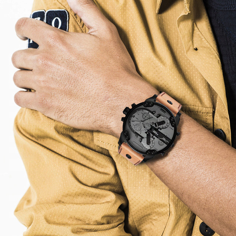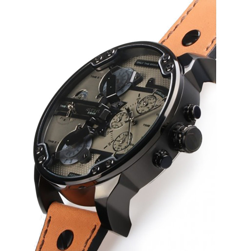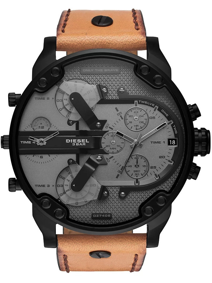 Zegarek męski Diesel Mr. Daddy 2.0 DZ7406 to duży męski zegarek. Brązowy skórzany pasek doskonale komponuje się z czarną kopertą, którą wykonano z hipoalergicznej stali szlachetnej. Na tarczy zamontowano 4 oddzielne mechanizmy mierzenia czasu. Całość pokryta szkłem mineralnym gwarantuje wytrzymałość na zarysowania i pęknięcia. Wodoodporność na 30 metrów chroni przed zachlapaniem. Zastosowany mechanizm kwarcowy jest niezawodny. Model Diesel Mr. Daddy 2.0 DZ7406 to połączenie niewymuszonej elegancji ze sportowym charakterem – musi przyciągać uwagę!