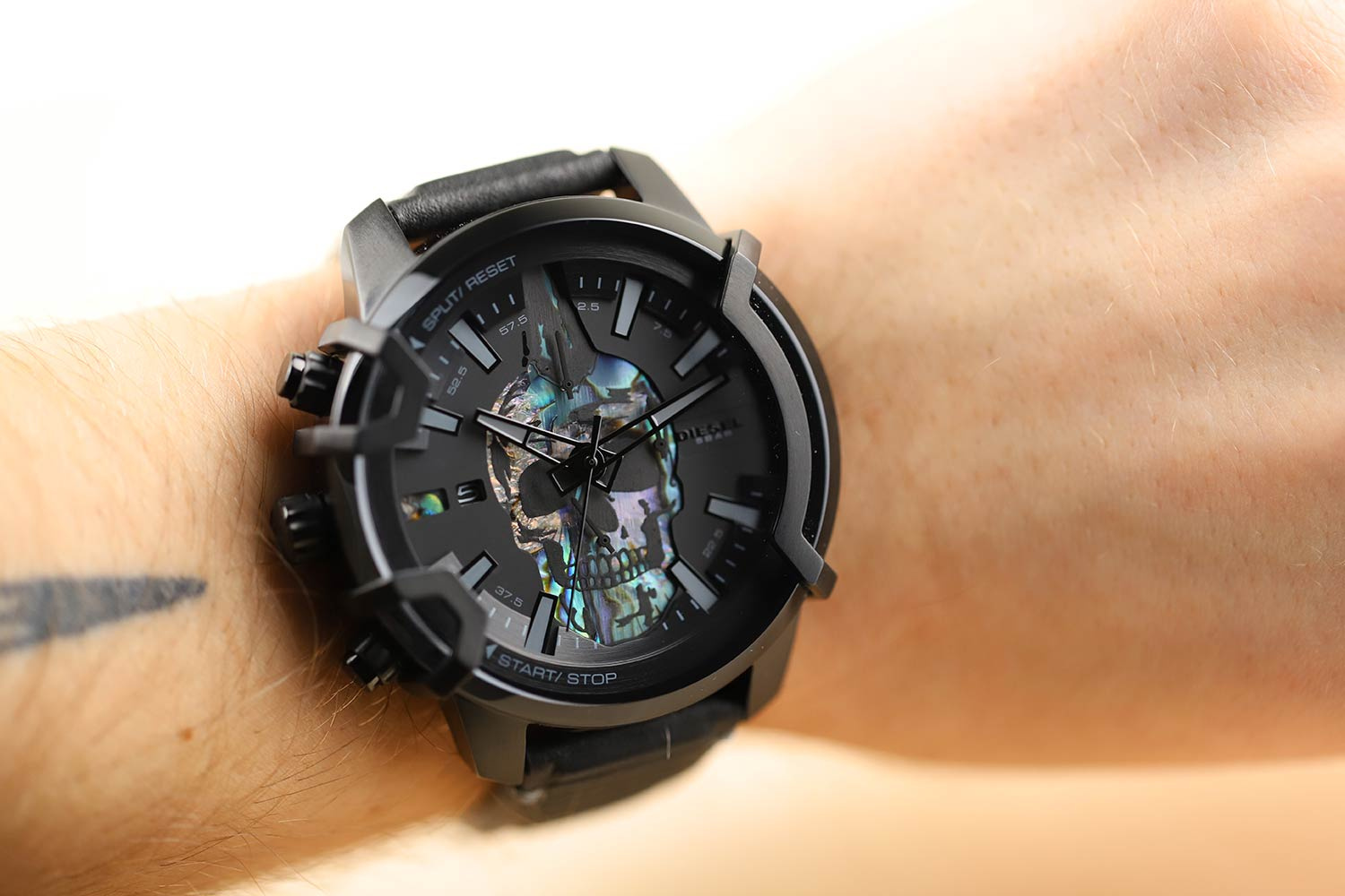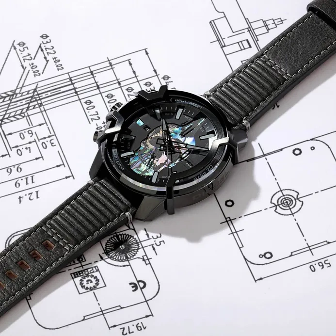 DIESEL GRIFFED DZ4576 to zegarek, który wyznacza nowe standardy w świecie mody. Jego koperta, wykonana z wytrzymałej stali nierdzewnej i pokryta czarną powłoką PVD, zapewnia nie tylko elegancki wygląd, ale również wyjątkową odporność na czynniki zewnętrzne. Umieszczone po lewej stronie przyciski oraz czarny skórzany pasek tworzą spójną i komfortową całość, doskonale dopasowując się do nadgarstka. Czerń tarczy ożywiają funkcje chronografu i datownika, wskazującego dzień miesiąca. Zegarek jest chroniony przez opalizujące, mineralne szkło, które wyróżnia się odpornością na stłuczenia. W jego wnętrzu znajduje się precyzyjny mechanizm kwarcowy zasilany baterią, a wodoodporność 50 M zapewnia ochronę przy kontaktach z wodą.