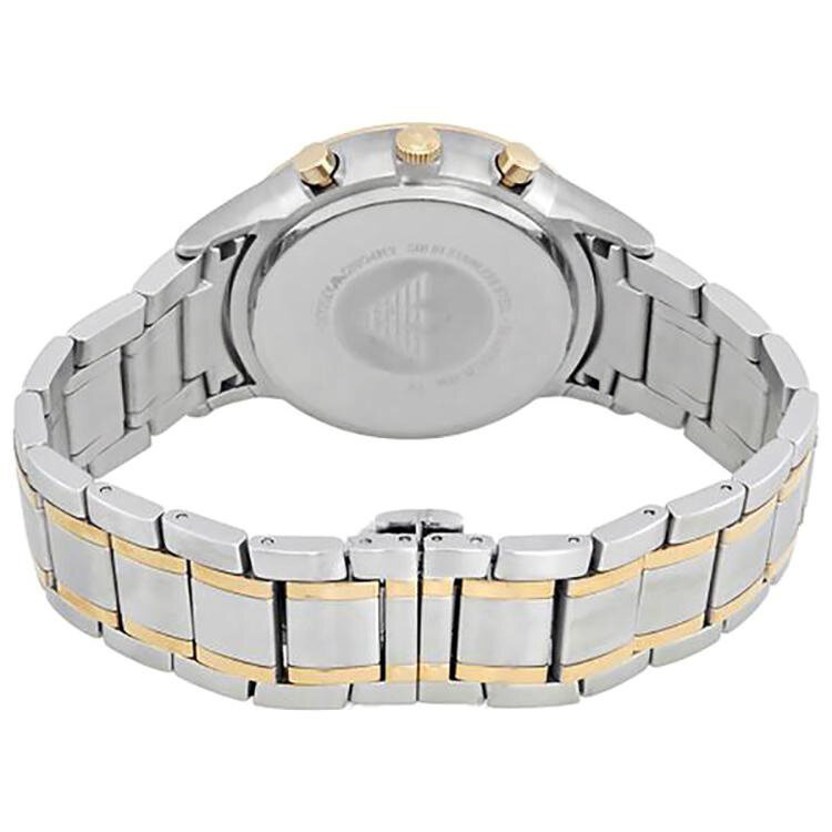 Męski zegarek Emporio Armani Renato AR11076 to klasyczny męski zegarek, idealny zarówno do eleganckiego ubioru, jak i do noszenia na co dzień. Koperta oraz bransoleta zostały wykonana ze stali szlachetnej, co gwarantuje jej wieloletnią odporność na zniszczenie. Na srebrnej tarczy zabezpieczonej mineralnym szkłem znajdziemy wyznaczniki godzin w kolorze złotym, datownik wskazujący dzień miesiąca oraz subtarcze będące wskazaniami chronografu.