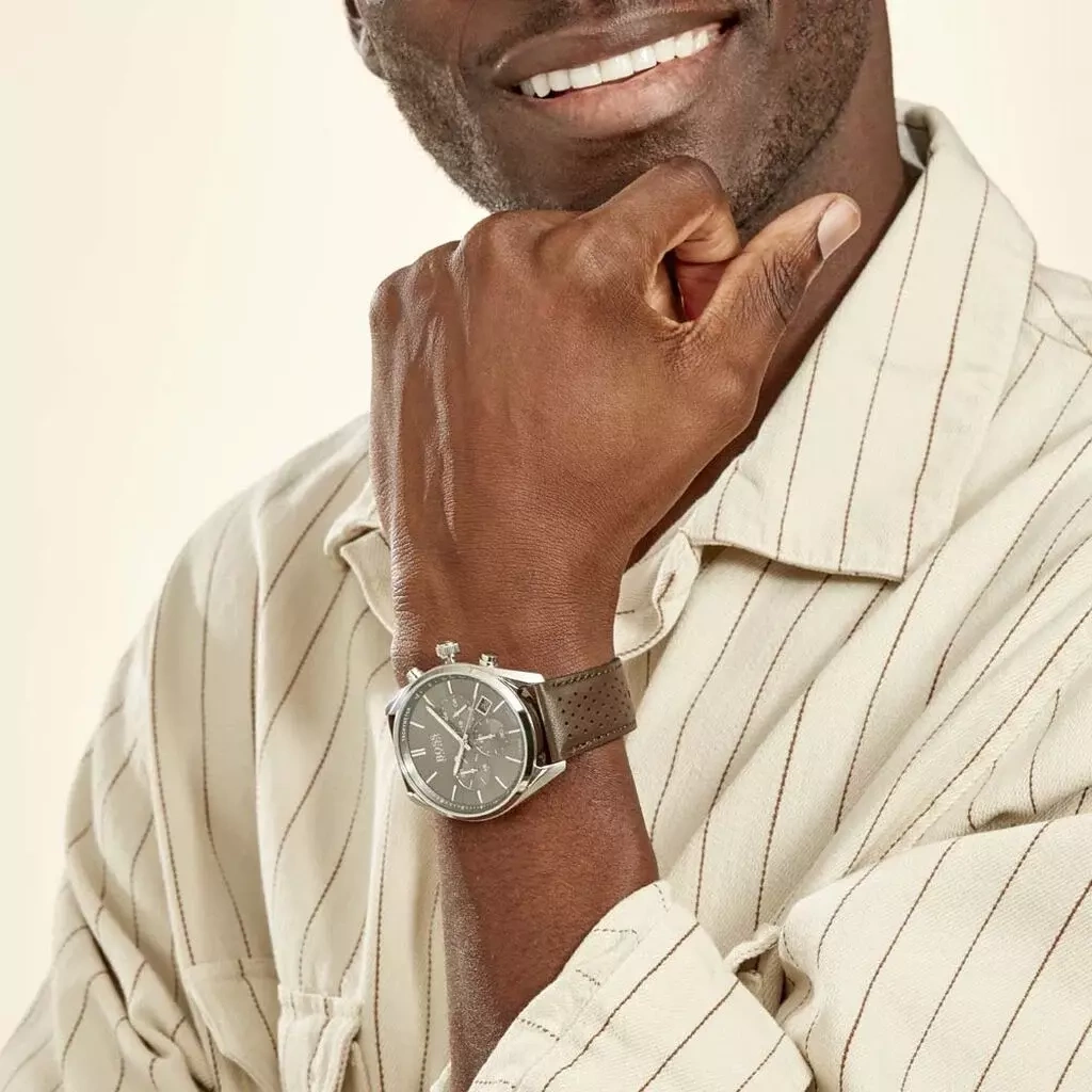 Kopertę wykonano z wysokiej jakości stali nierdzewnej, co gwarantuje wieloletnią odporność na zniszczenie. Całości dopełnia pasek skórzany w kolorze brązowym. Klasa wodoszczelności czasomierza to WR100, co pozwala pływać i nurkować na niewielkie głębokości bez konieczności zdejmowania zegarka.