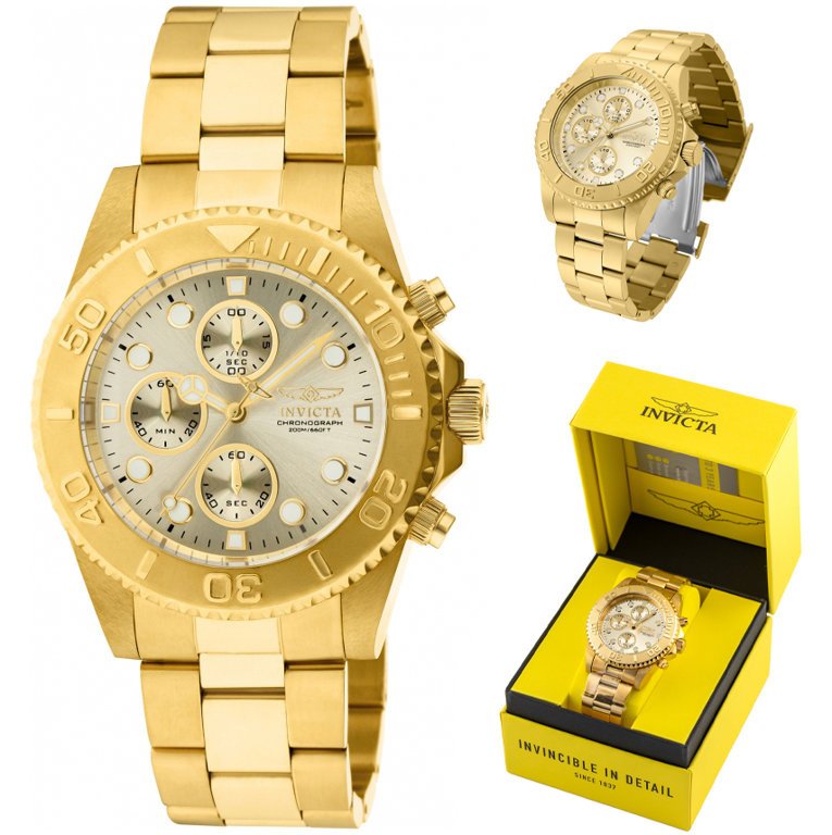Zegarek INVICTA Pro Diver 1774 to przepiękny, złoty nurek z wodoszczelnością do 200m i kwarcowym mechanizmem SEIKO VD55D