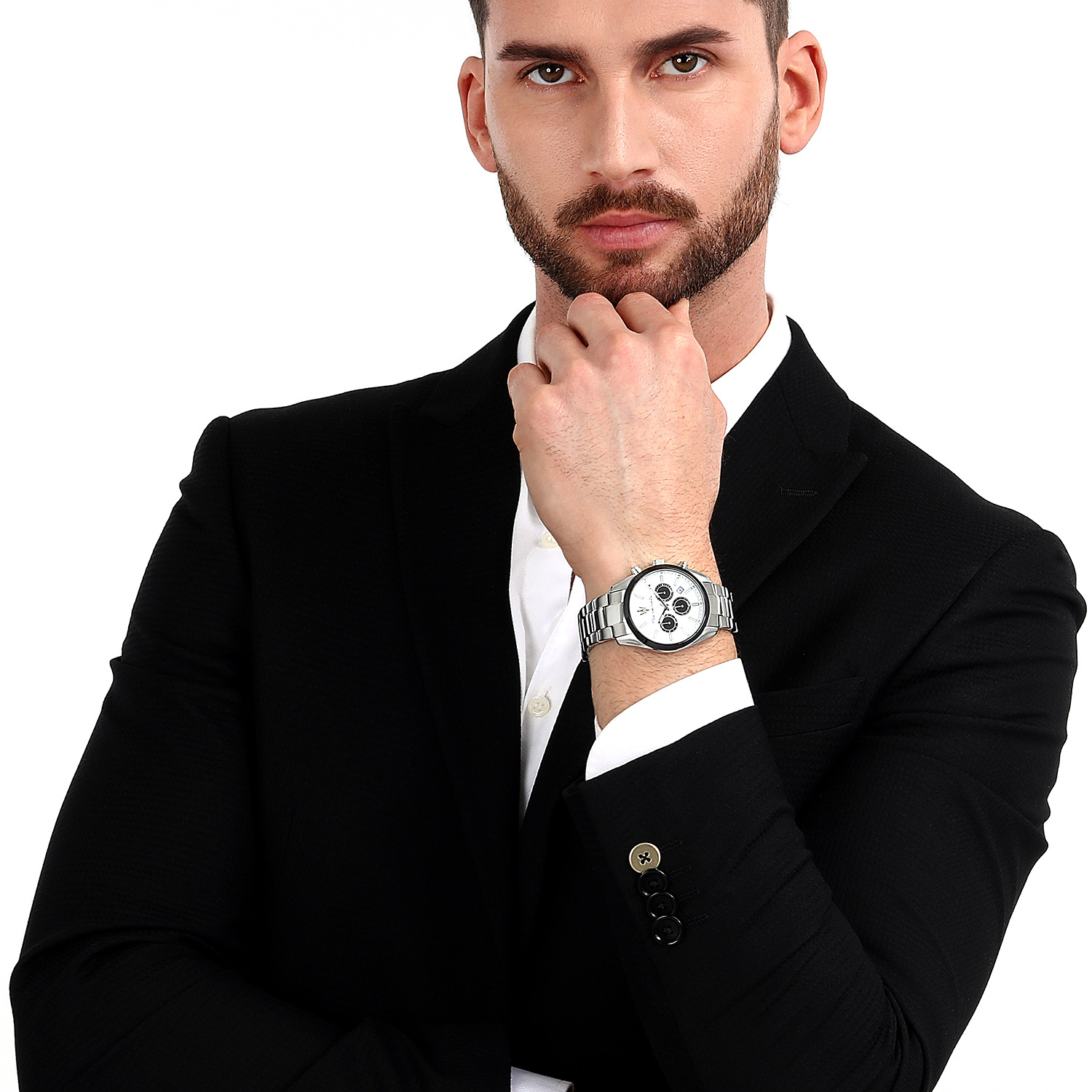 Zegarek Maserati R8853151004 to elegancki i nowoczesny zegarek męski. Na białej tarczy z czarnymi indeksami zabezpieczonej mineralnym szkłem znajdziemy datownik wskazujący dzień miesiąca oraz subtarcze będące wskazaniami chronografu i czasu dobowego.