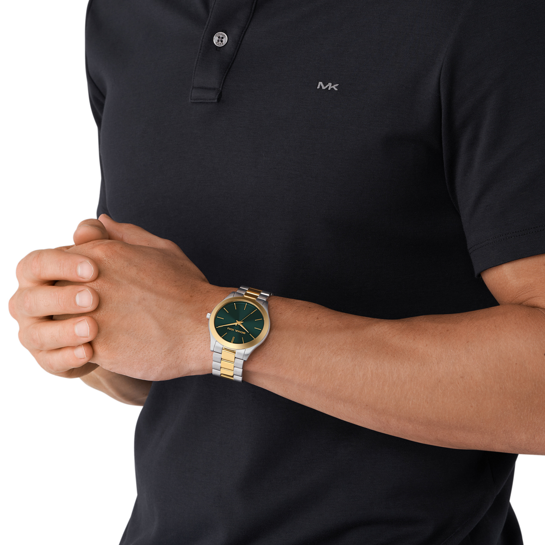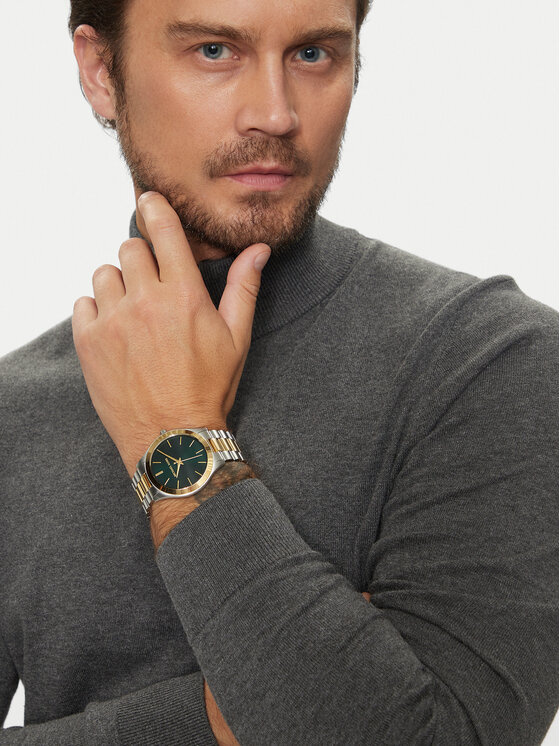 Zegarek Męski Michael Kors Runway MK9149 to stylowy, klasyczny model dla każdego mężczyzny. Zegarek ten został wykonany w całości ze stali szlachetnej w kolorze srebra i złota z zieloną tarczą, co gwarantuje wieloletnią odporność na zniszczenie. Za niezawodne działanie urządzenia odpowiada dokładny mechanizm kwarcowy zasilany baterią.