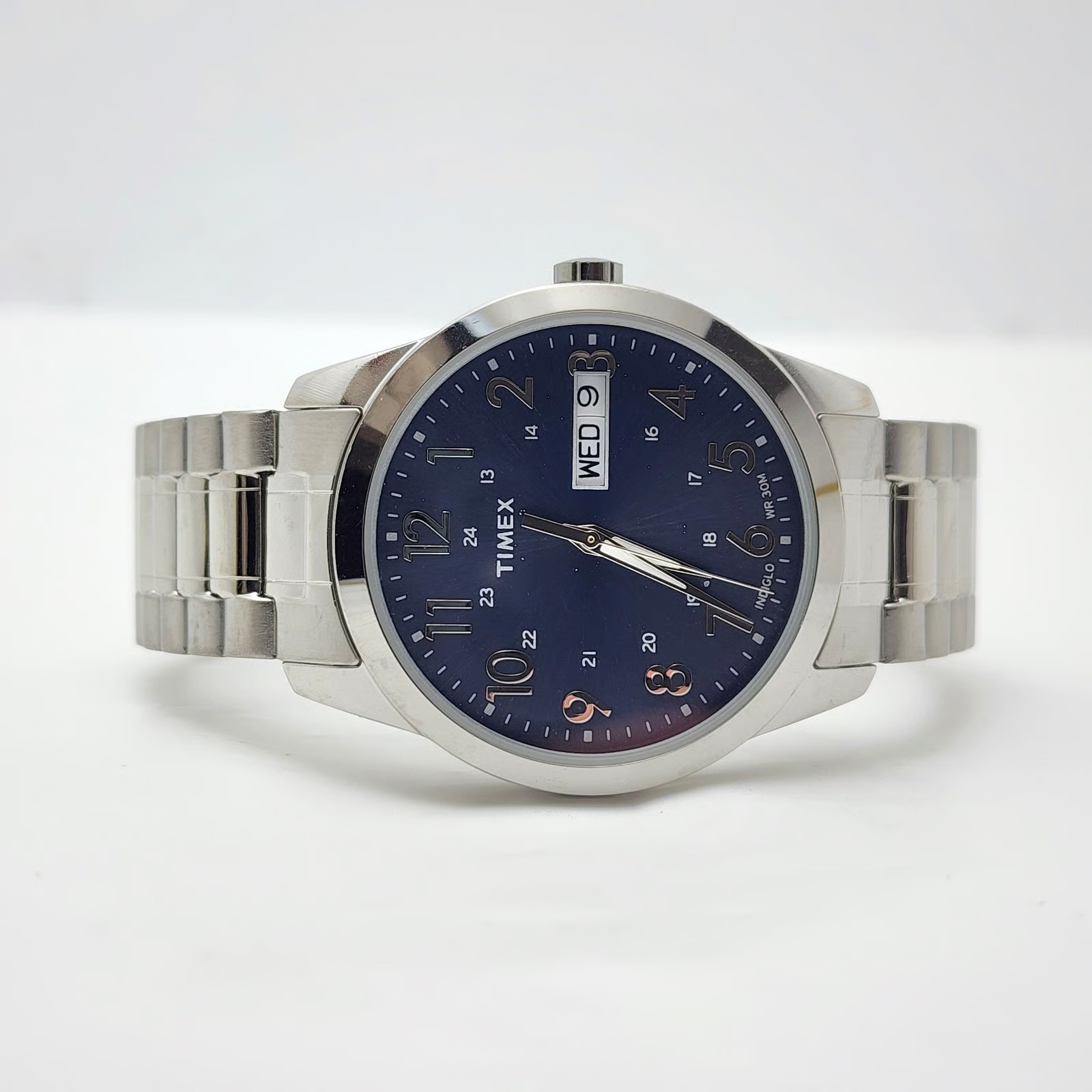 Męski zegarek TIMEX South Street Sport T2M933 pasuje idealnie do codziennych stylizacji, jak i na bardziej uroczyste okazje. Na granatowej i czytelnej tarczy umieszczono datownik. Model ten posiada srebrną bransoletę oraz srebrną kopertę wykonaną z wysokiej jakości stali szlachetnej – dodatkowo w zestawie dołożony jest czarny skórzany pasek. Klasa wodoszczelności zegarka to WR30. Podświetlenie tarczy INDIGLO – Specjalny patent na podświetlenie tarczy. Po wciśnięciu koronki lub przycisku funkcyjnego tarcza zegarka zostanie podświetlona od spodu.