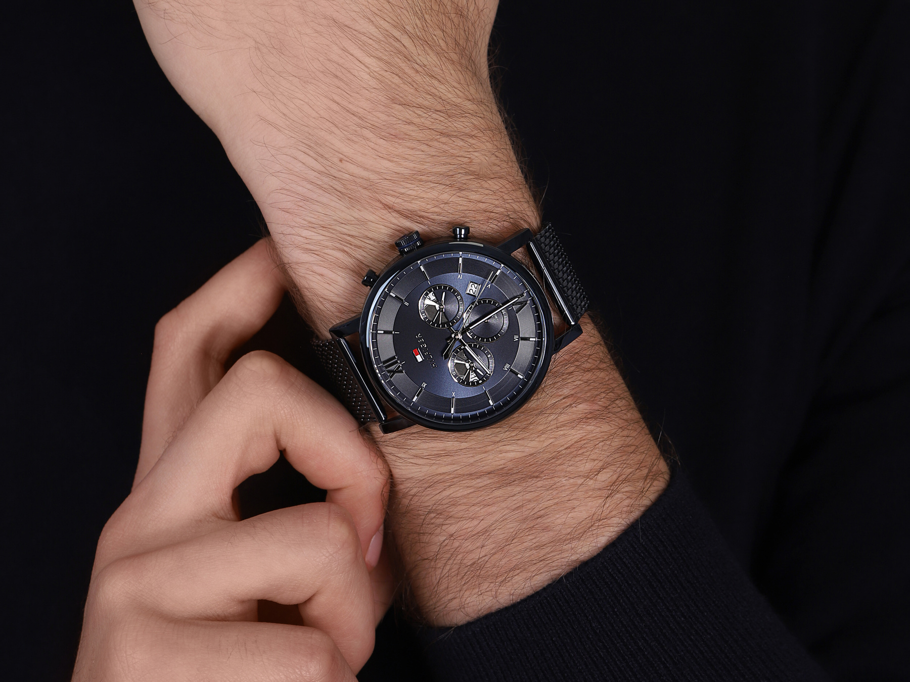 Zegarek męski TOMMY HILFIGER 1710397 należy do kolekcji Evan i łączy w sobie wyjątkowy design oraz praktyczność. Model ten jest wyposażony w japoński mechanizm kwarcowy, który zapewnia precyzyjne wskazania czasu, a jego zasilanie odbywa się za pomocą baterii.