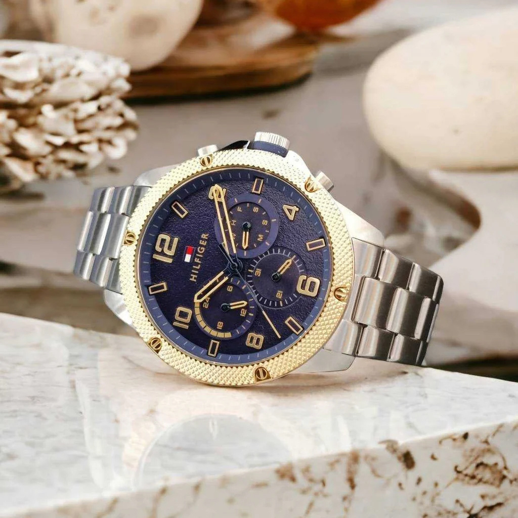 Zegarek Tommy Hilfiger 1792031 to połączenie męskiej elegancji i sportowego luzu. Duża, granatowa tarcza podkreślona stalową kopertą i komfortową bransoletą tworzą nowoczesną i uniwersalną kompozycję. Kwarcowy mechanizm oraz wodoszczelność 5 ATM sprawiają, że ten model sprawdzi się zarówno na co dzień, jak i podczas aktywności. Minimalistyczny styl i solidne wykonanie czynią go świetnym wyborem dla mężczyzn szukających zegarka łączącego design z funkcjonalnością.