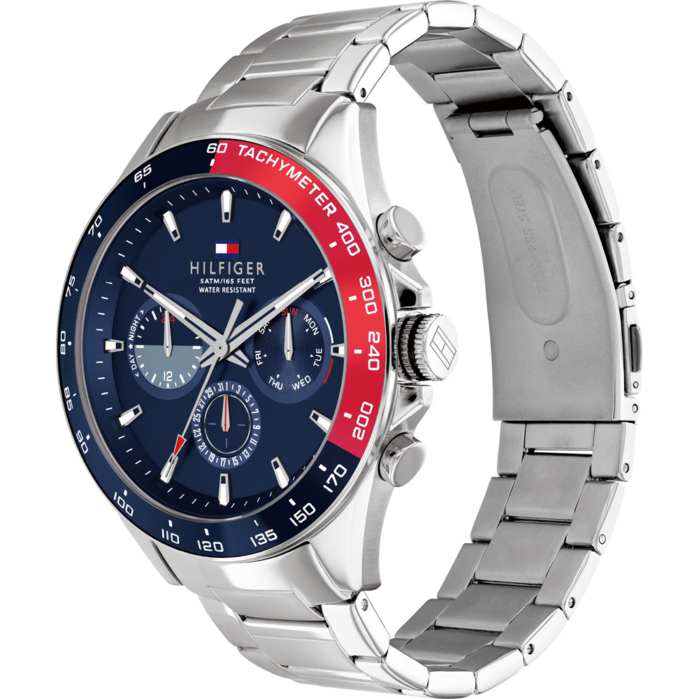 Zegarek męski TOMMY HILFIGER OWEN 1791968 model tego zegarka to doskonały wybór do codziennych oraz eleganckich stylizacji. Nowoczesny design daje szerokie pole manewru z kolorystyką i charakterem strojów, do których zostanie dobrany. Ten model posiada stylową kopertę w srebrnym kolorze. Tarcza w kolorze granatowym wykonana wysokiej klasy stali szlachetnej, odpornej na korozję. Urządzenie wyposażono dodatkowo w sub-tarcze czasu 24h, tachymetr oraz luminescencyjne wskazówki i indeksy, umożliwiające odczytanie godziny nawet nocą.