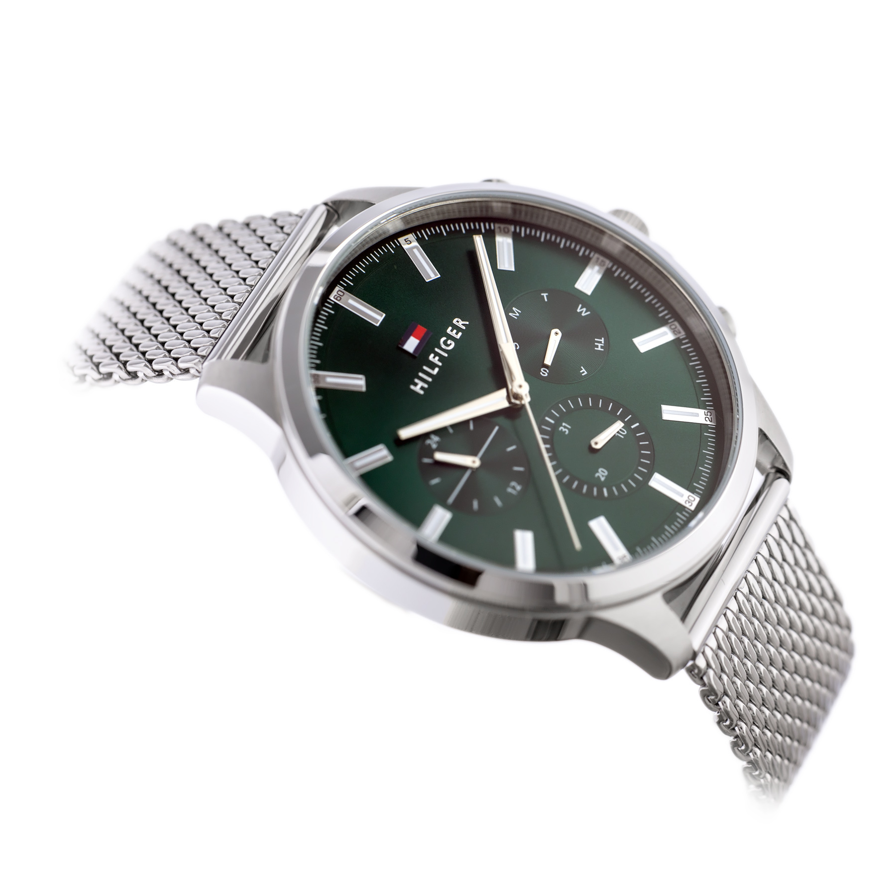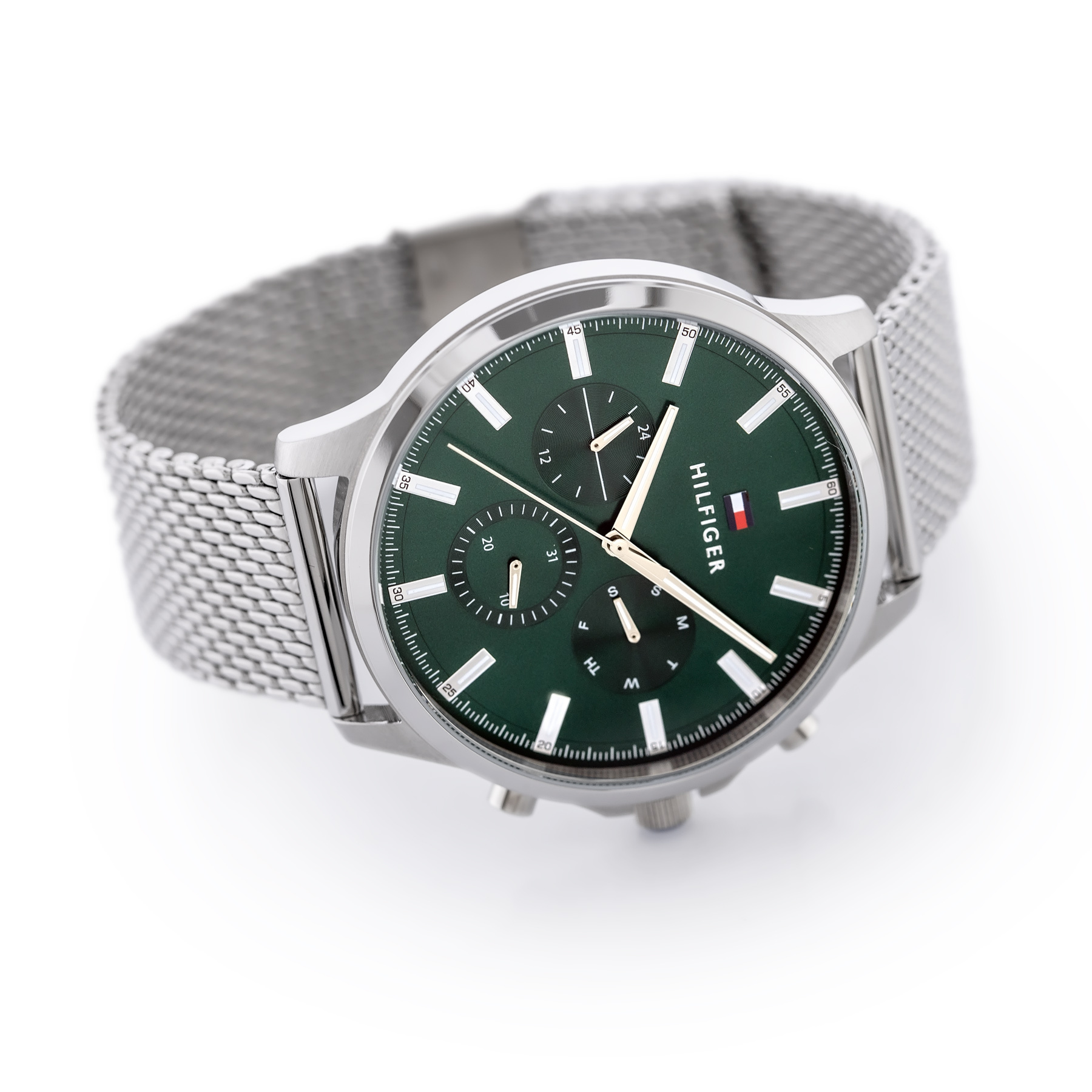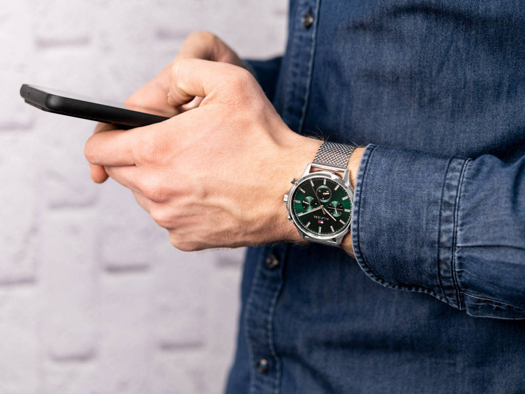 Zegarek męski Tommy Hilfiger RYDER 1710499 idealnie sprawdzi sie zarówno do eleganckiego ubioru, jak i do noszenia na co dzień. Tommy Hilfiger posiada czytelną zieloną tarczę, bransoletkę oraz koperte ze stali szlachetnej. Model Tommy Hilfiger wyposażono w funkcję datownika dni tygodnia i miesiąca oraz w tarczę czasu 24-godzinnego.