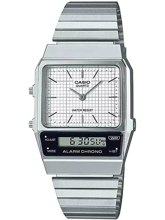 Zegarek Casio Vintage Dual Time AQ-800E-7A to wyjątkowy model, który łączy w sobie retro urok z nowoczesną funkcjonalnością. Jego klasyczna, kwadratowa koperta w srebrnym odcieniu i srebrna bransoleta z wysokiej jakości stali szlachetnej nadają mu unikalny charakter, który z pewnością wyróżnia się na tle innych zegarków. Subtelny wygląd z wyświetlaczem LCD i czytelnymi cyframi sprawia, że jest to idealny wybór dla osób, które cenią sobie prostotę, ale też chcą mieć przy sobie praktyczne akcesorium na co dzień.