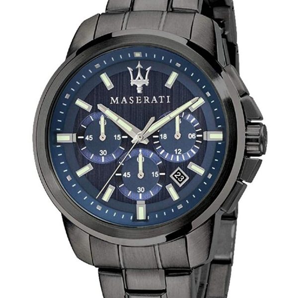 OPIS: Zegarek Maserati Successo R8873621006 to elegancki i nowoczesny zegarek męski. Na szarej tarczy zabezpieczonej mineralnym szkłem znajdziemy datownik wskazujący