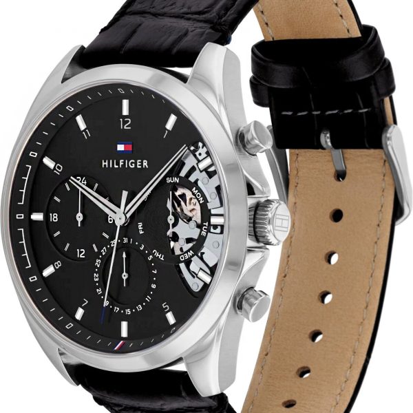 OPIS: Zegarek męski Tommy Hilfiger Daniel 1710413 to model kwarcowy zasilany baterią, który charakteryzuje się eleganckim designem. Posiada okrągłą kopertę