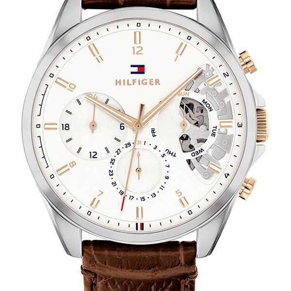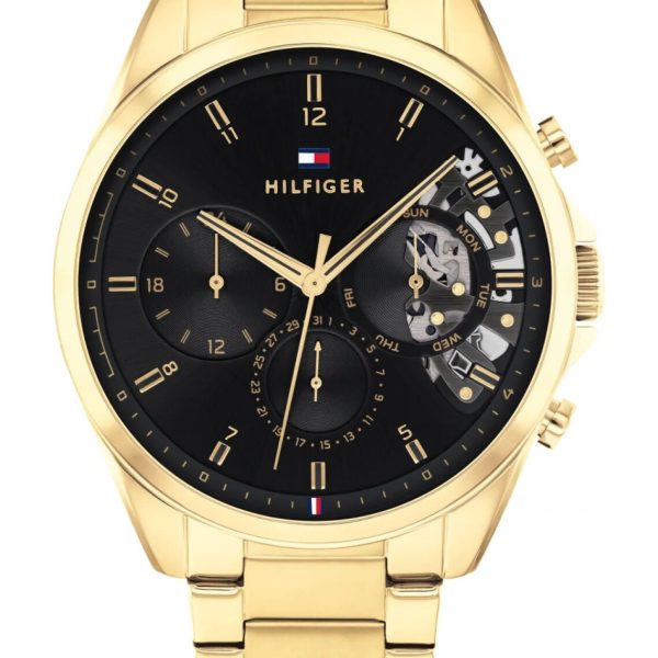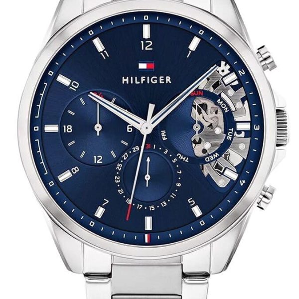 OPIS: OPIS: Tommy Hilfiger 1710448 jest napędzany mechanizmem kwarcowym, którego fragment można podglądać przez tarczę typu open-heart. Koperta oraz bransoleta są odporne na korozję, gdyż
