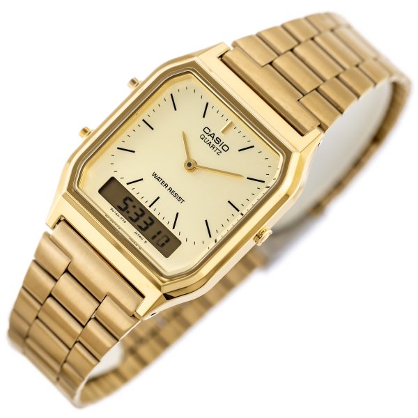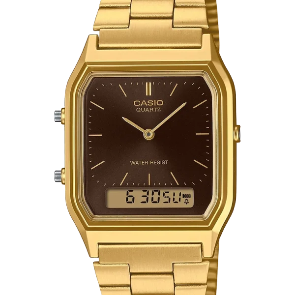 OPIS: Kultowy zegarek Casio AQ-230GA-5A to połączenie elegancji, funkcjonalności i retro designu. Ten model stanowi idealny wybór dla osób poszukujących stylowego,