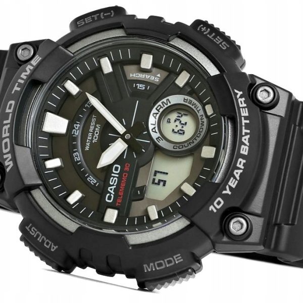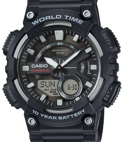 OPIS: Zegarek męski Casio AEQ-110W-1AVEF to doskonały wybór dla mężczyzn prowadzących aktywny tryb życia, którzy szukają niezawodnego i funkcjonalnego czasomierza.
