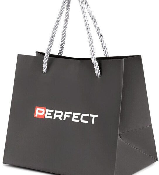 WYMIARY: szerokość: 102mm długość: 160mm wysokość: 136mm Torebka prezentowa Perfect w kolorze szarym, wykonana z utwardzanego papieru. Logo producenta na