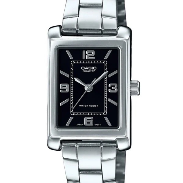 OPIS: Zegarek CASIO LTP-1234DD-1A wyróżnia się elegancją prostokątnej koperty i minimalistycznym designem. Jego niezawodność oparta jest na precyzyjnym japońskim mechanizmie