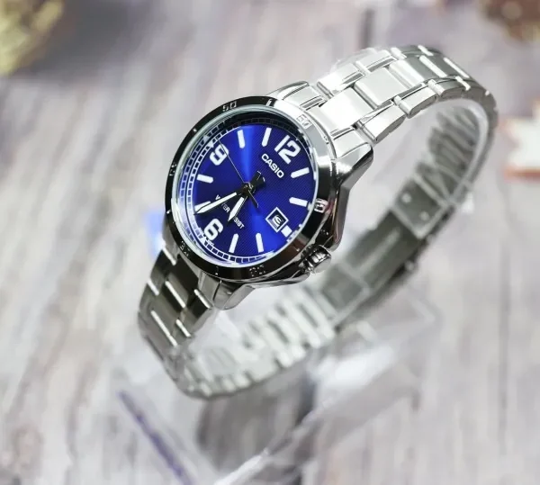 OPIS: Zegarek damski Casio LTP-V004D-2B to wyjątkowy wyraz subtelności i elegancji dla nowoczesnych kobiet. Jego srebrna wykonana ze stali szlachetnej bransoleta